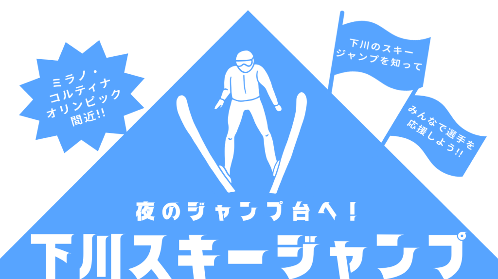 ミラノ・コルティナオリンピック間近!!下川のスキージャンプを知ってみんなで選手を応援しよう!!ジャンプの試合が生で見られる!!全道ノルディックスキー競技大会、ジュニアジャンプ下川大会、子供向けスポーツ教室ジャンプ体験会など、スキージャンプにふれる機会が盛りだくさん。大会は下川スキー場にてどなたでも自由に観覧いただけます。