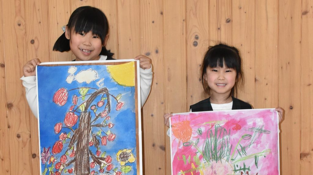 第51回北海道教育美術展でオアシス保育園年中の船造一華ちゃんが奨励賞、大谷幼稚園年長の嶋野紗良ちゃんが入選した。