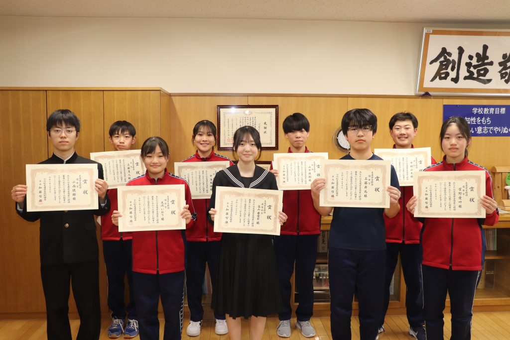 町の交通安全及び防犯標語の表彰式が、6日午後1時から下川中学校で行われた。
