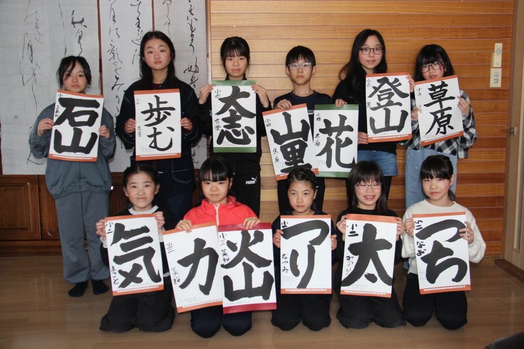 書心書道教室に通う子どもたちが、第59回北北海道学生書道展で入賞。角尾美桜さんが最高の推薦、芳賀有澄さんと金子冬磨さんが奨励賞を受賞するなどして笑顔を見せた。