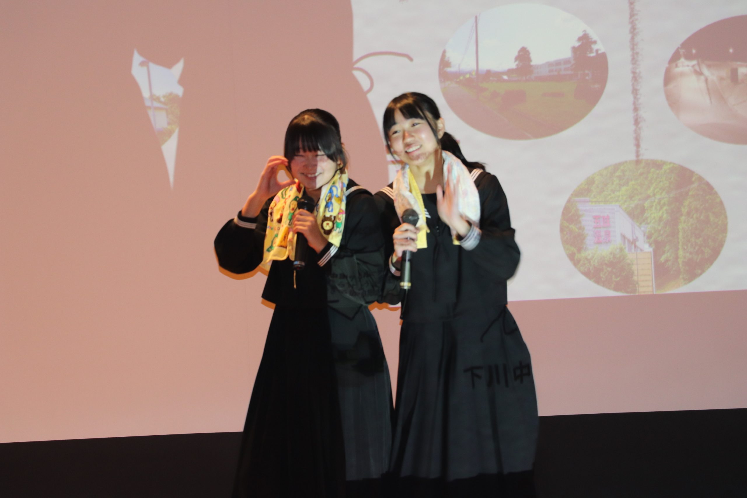 冒頭、生徒を代表して佐藤大翔さんが「2学期から、総合的な学習で、まちづくりについての現状や課題などをインタビューするなどして、どうすれば下川が盛り上がるかを考えてきました。発表を聞いて、意見をいただければ幸いです」と挨拶した。