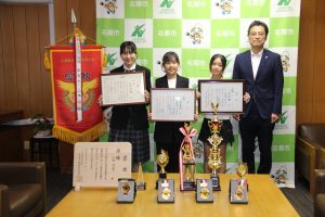 中瀬さんは、同校の村澤泰志教頭と町役場を訪れ、草野町長らに報告した。