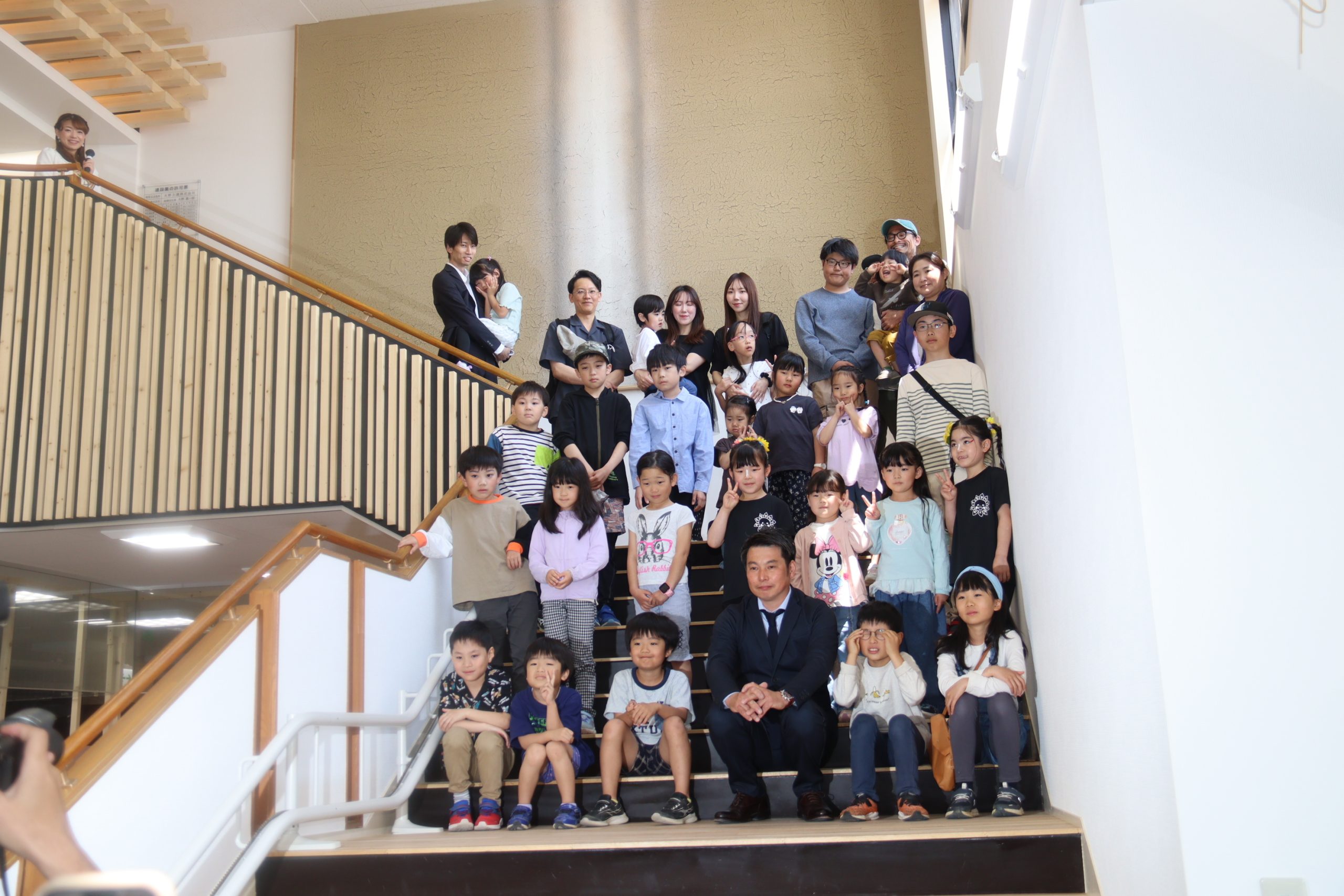 大野社長が「この土壁アートはこれで完成ではなく、子どもたちの成長とともに、この作品も成長させていきたいと考えており、その際はぜひ皆さんに参加していただきたい。このAubaは今後、多くの人が集い、出会いの場となることを願っている」と挨拶。