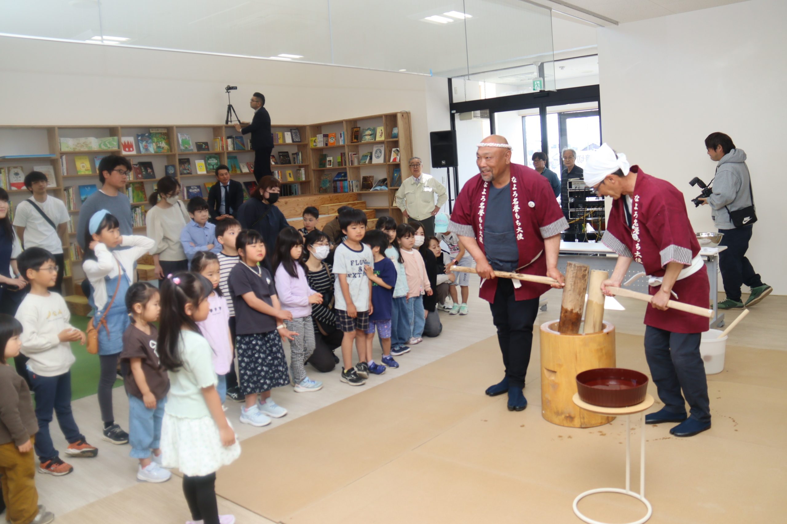 この日は土壁アートの除幕に合わせて、なよろ名誉もち大使の水間健詞さん、及川友和さんによる餅つきや、朝妻さん率いる「AJO☆朝チア部」による応援パフォーマンスが行われるなど、思い出深い時間を過ごした。
