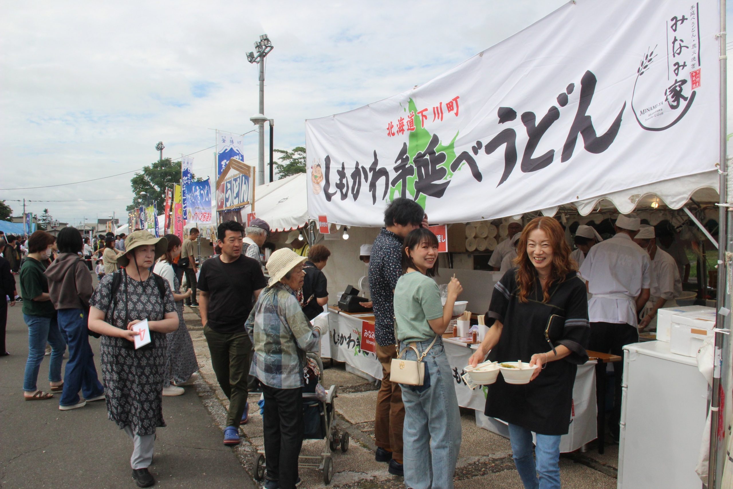 第22回しもかわうどん祭りが、8月30、31の両日、にぎわいの広場で開かれた。同実行委員会(西村和樹実行委員長)主催。地元下川をはじめ道内外の有名うどんが並び、食べ比べる人の列ができた。