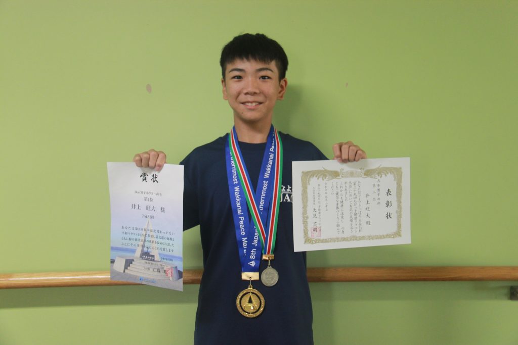 「日本最北端わっかない平和マラソン」は、9月7日に稚内市内で開催。2km男子小学5・6年生の部(25人出場)にエントリーし、7分21秒のタイムを記録し、初出場で優勝した。