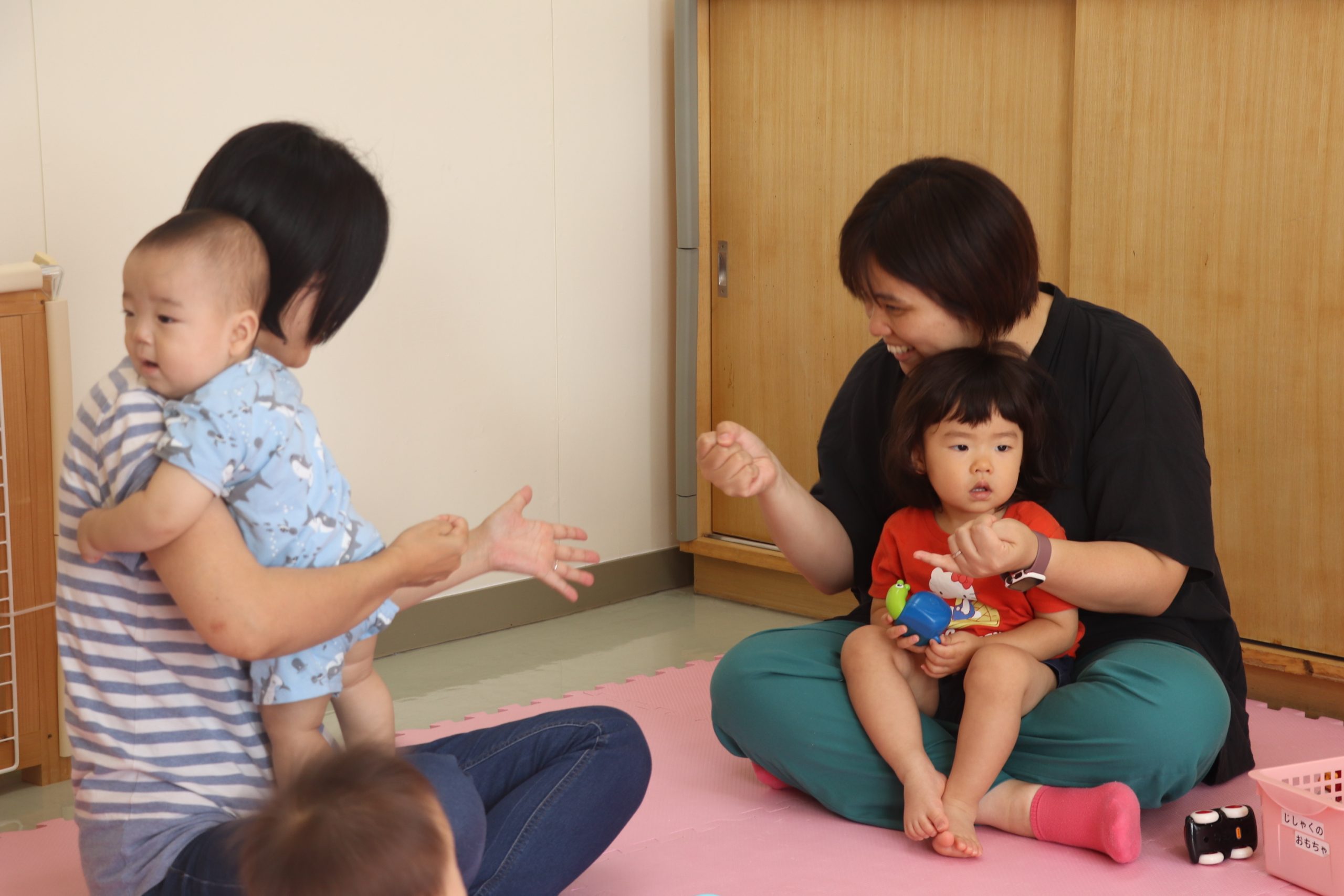 子育て支援センターひまわりらんど(紺野美奈子所長)主催の「きらきらママ」が、10日午前10時半から同館で開かれ、親子6組が参加した。