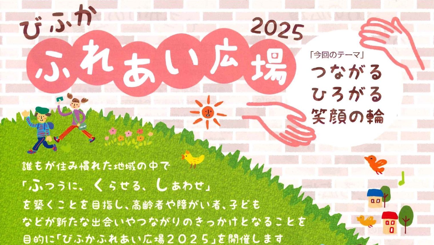 誰もが住み慣れた地域の中で「ふつうに、くらせる、しあわせ」を築くことを目指し、高齢者や障がい者、子供などが新たな出会いやつながりのきっかけとなることを目的に「びふかふれあい広場2025」を開催します