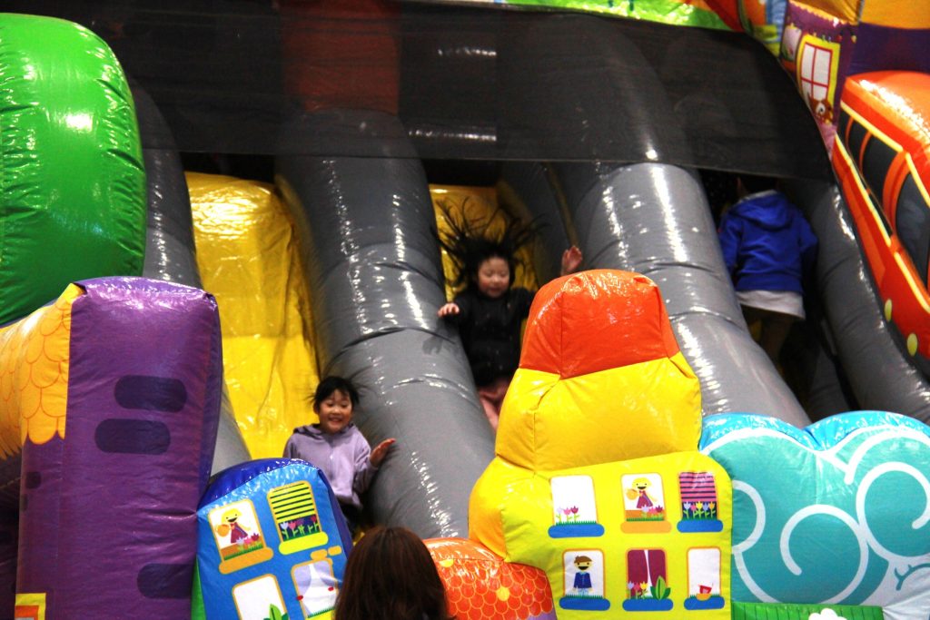 会場には、10台の「ふわふわ遊具」を設置し、大きな滑り台やジャングルジムなどを用意。子どもたちは楽しく遊び、歓声が上がっていた。