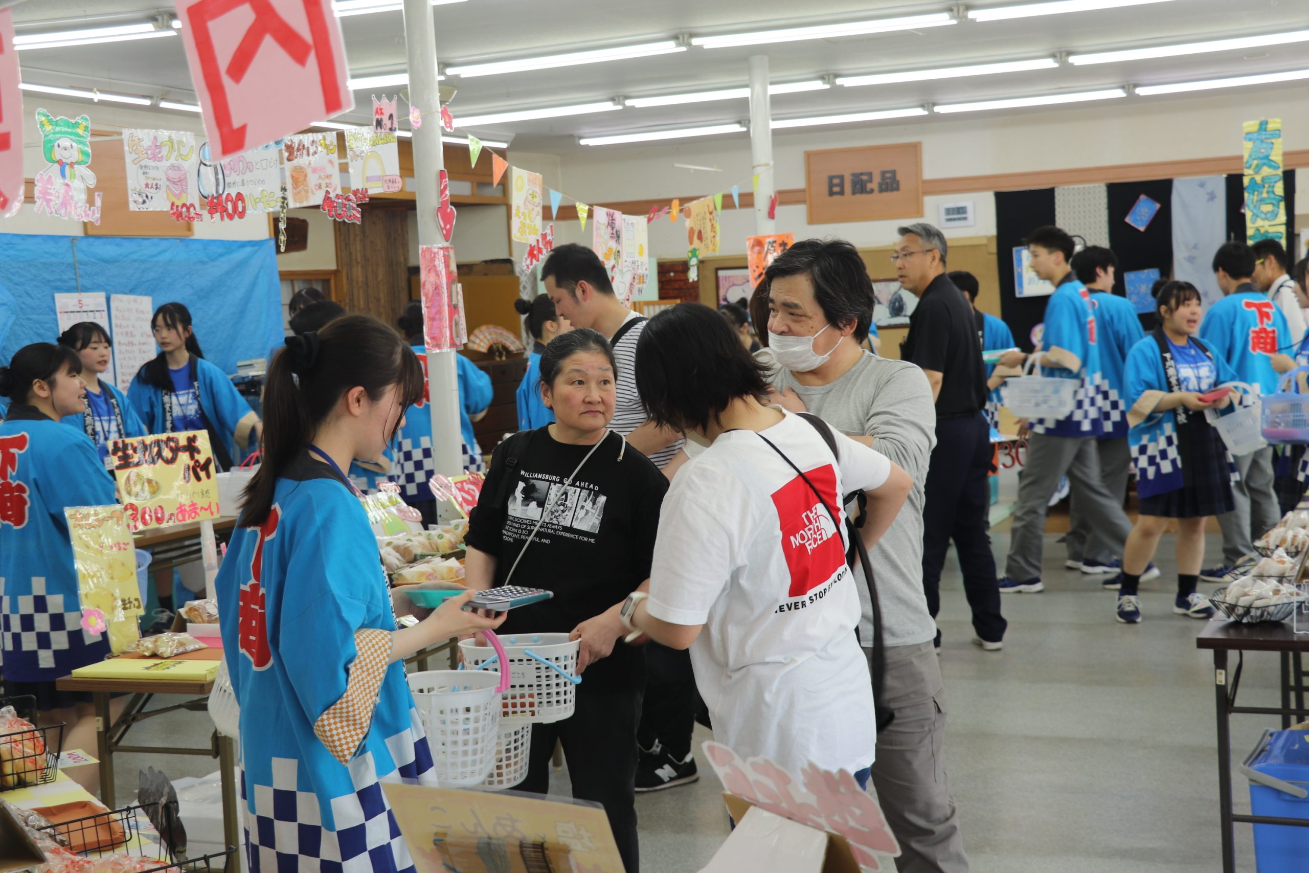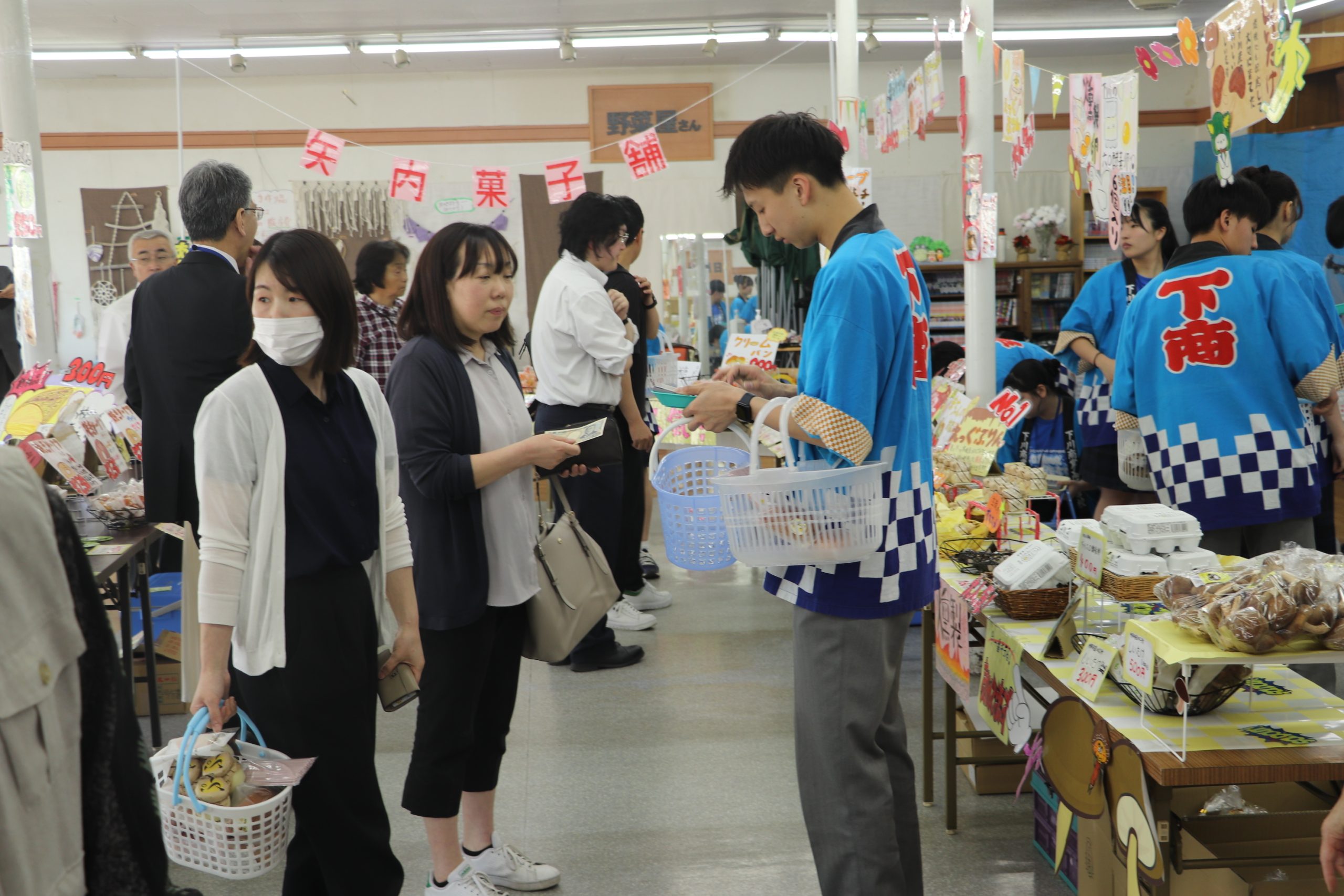 同校では、1・2年次に学習した商業に関する知識や技術を活用し、地元特産品などを販売実践することにより、商業活動への理解と望ましい職業観の育成などを図ることを目的に、販売実習を実施している。