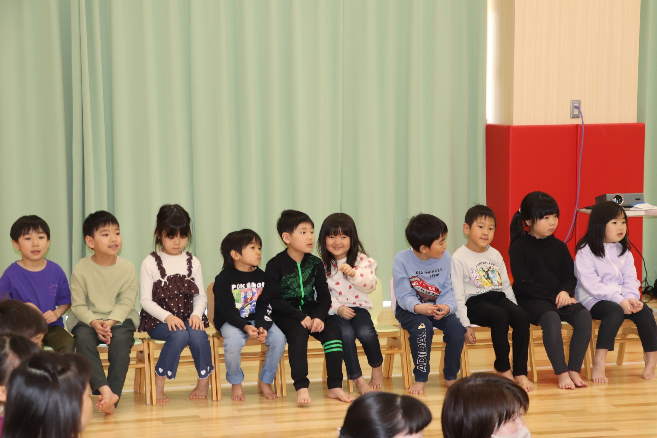 卒園児が一人ずつ名前を呼ばれて入場すると、2歳児から4歳児までの園児が温かい拍手で迎えた。