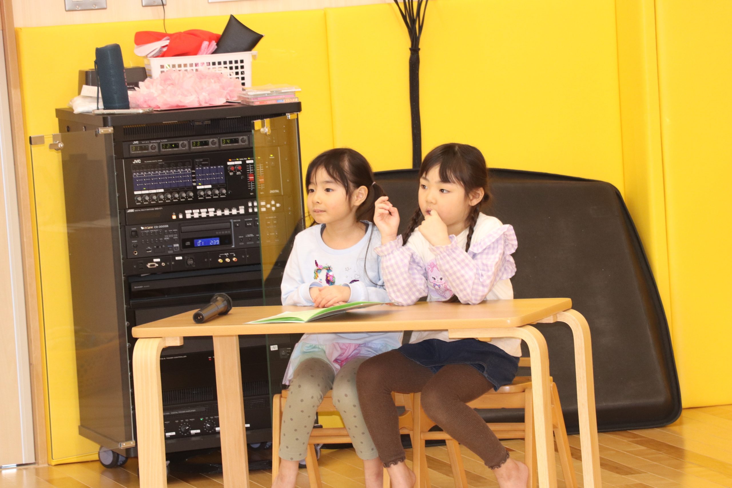 司会の4歳児2人が「これからお別れ会を始めます」と挨拶。