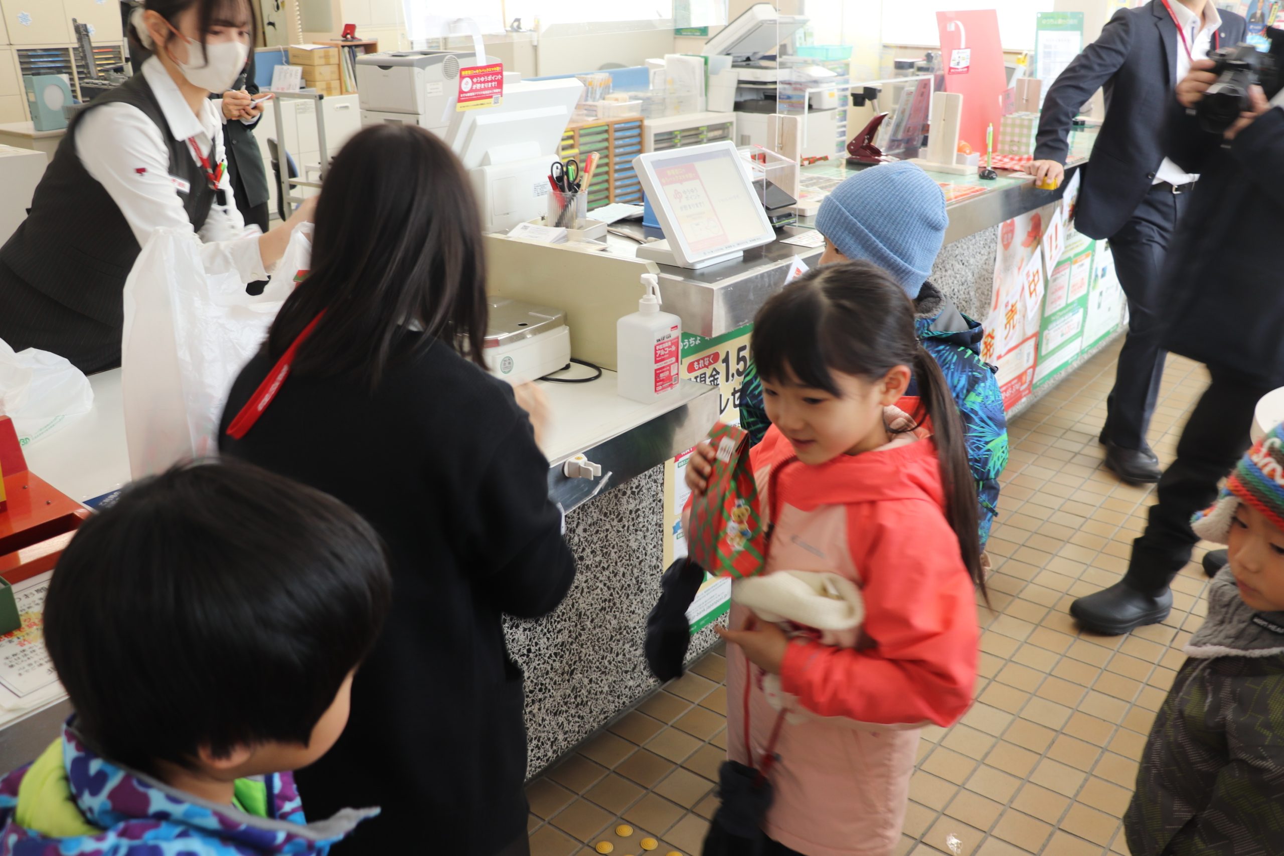 下川町認定こども園「こどものもり」(古屋いづみ園長)の年長児17人は、24日午前10時半に下川郵便局(剣地正人〔つるぎちまさと〕局長)を訪れ、年賀状を投函した。