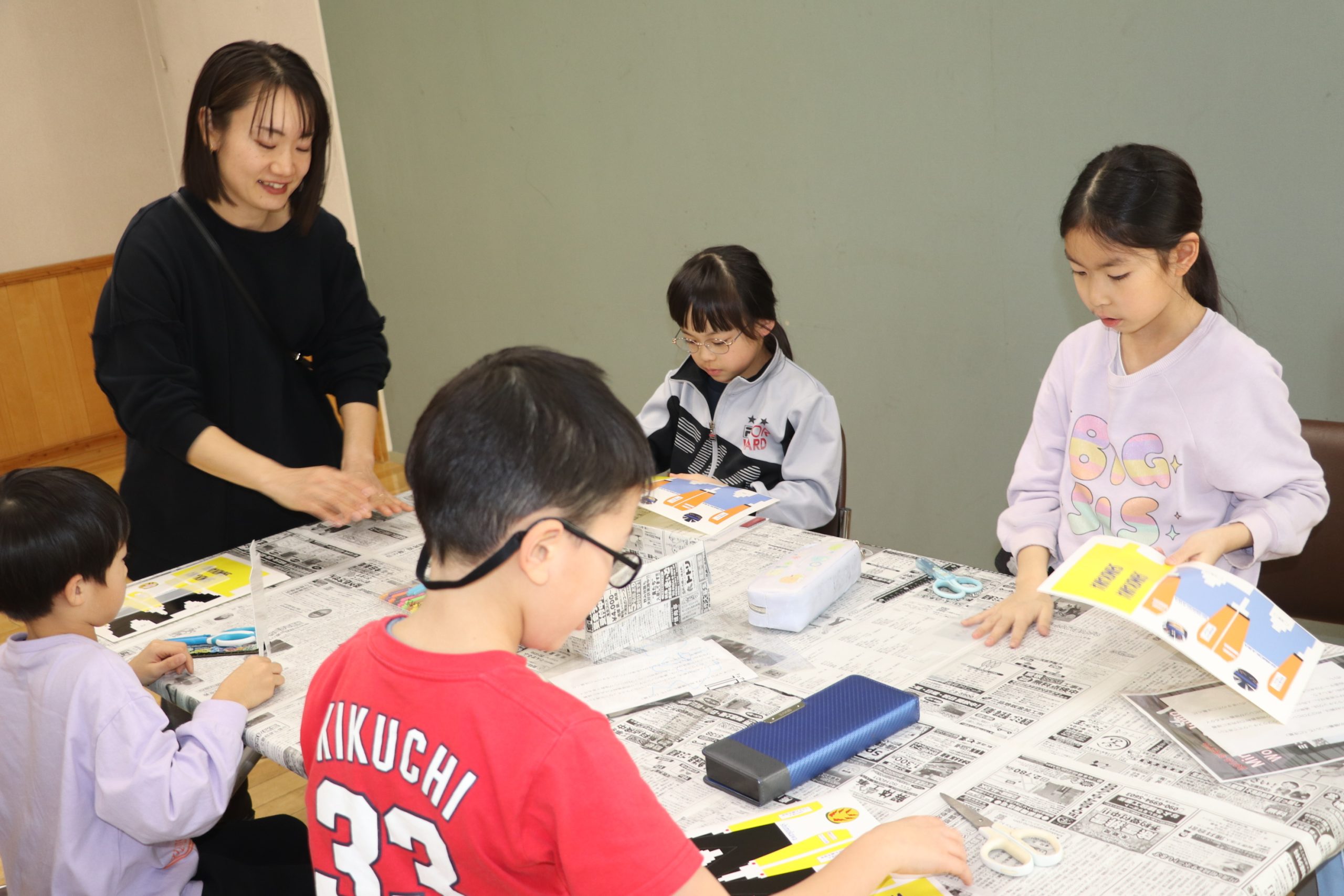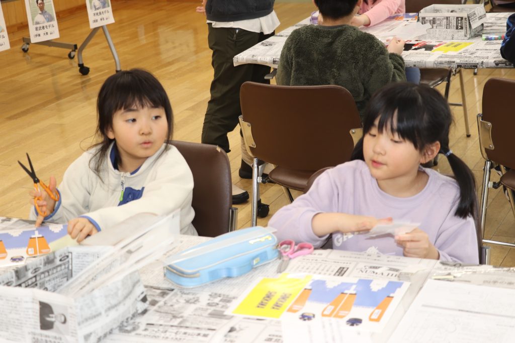 参加児童たちは、持参したハサミや、サインペンなどを用いて、スタッフの指導を受けながら、ミニチュアジャンパーを完成させ、自分の作ったものを見せ合いながら、それぞれ感想を話していた。