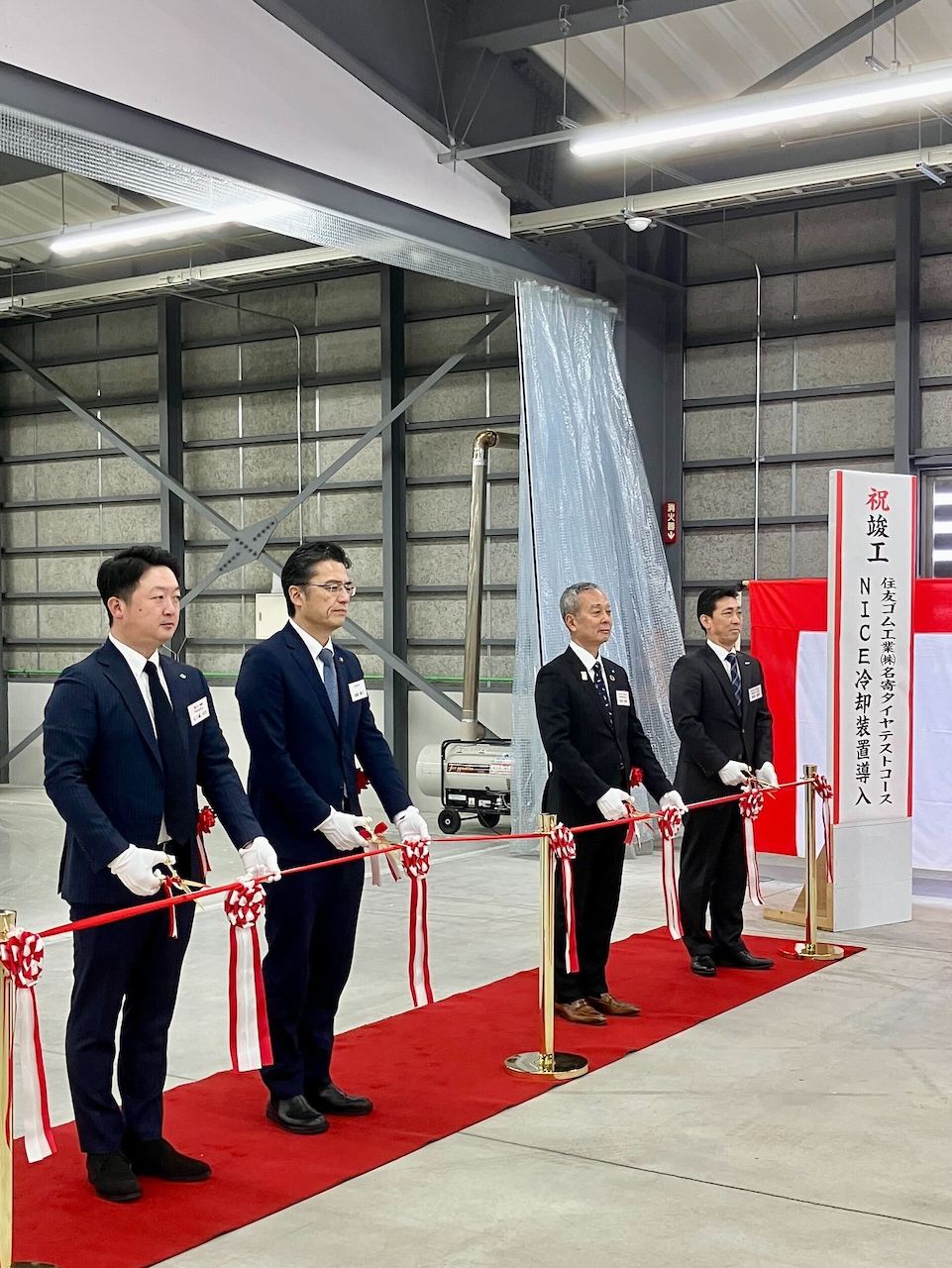 住友ゴム工業株式会社(本社・兵庫県神戸市、山本悟代表取締役)の名寄タイヤテストコース(名寄市智恵文智東)の屋内氷上試験施設「NICE」に、床下から路面に自動的に氷を張ることが可能な冷却装置を導入。竣工式が15日午前10時から同施設で行われた。国際基準に規定された路面温度で、安定的に試験を実施することができるようになり、試験期間も12月から3月までと2倍に伸びている。(12月17日掲載)