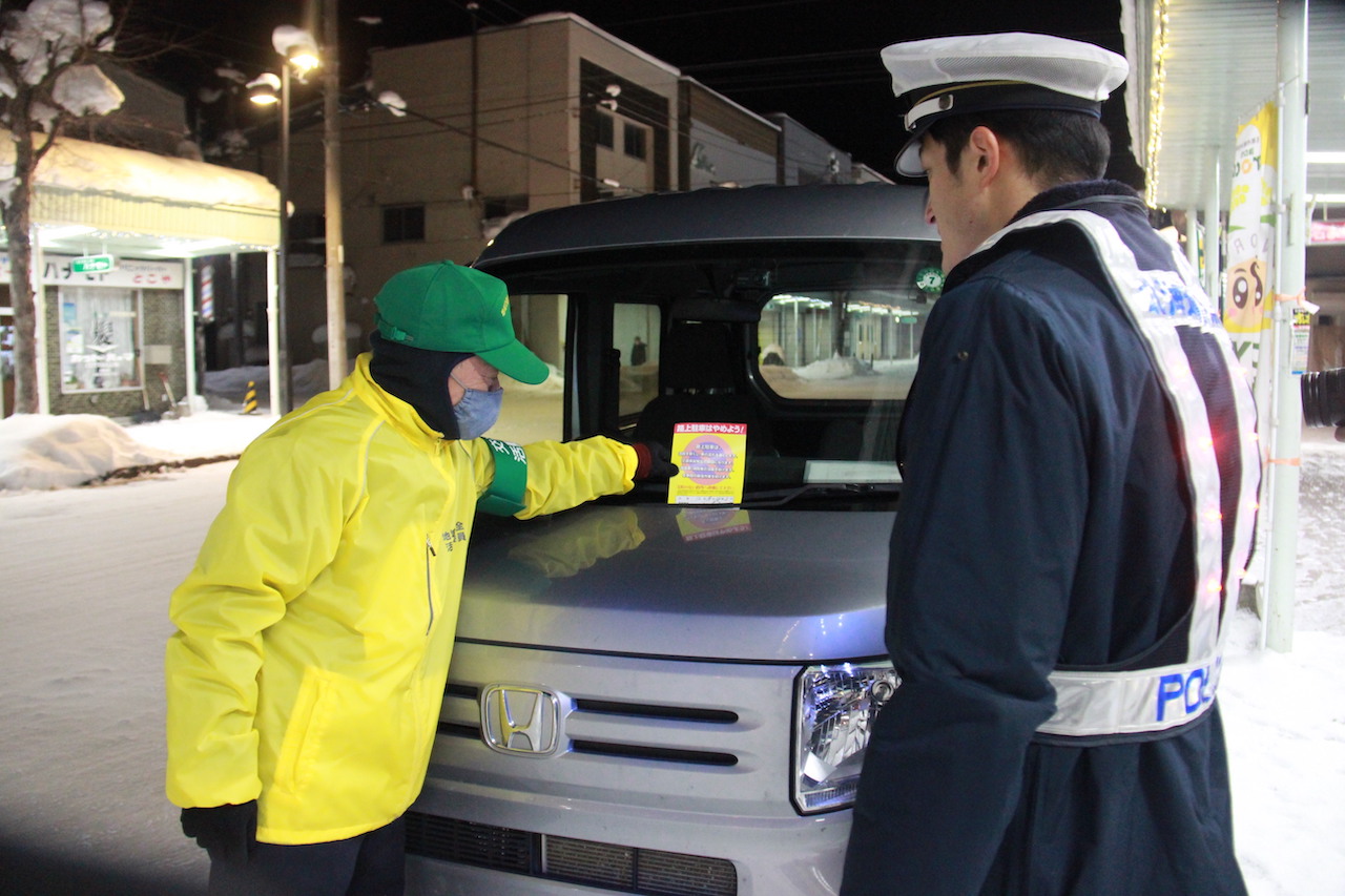 名寄警察署(米村和信署長)による「迷惑駐車撃退パトロール」が、19日午後6時から名寄地区繁華街、商店街周辺で行われた。路上駐車は道幅が狭くなり、他車の流れを悪くして、交通事故発生の原因となること。救急車や消防車の活動、除雪作業の妨げになるため、速やかに車両移動するよう警告した。(12月23日掲載)