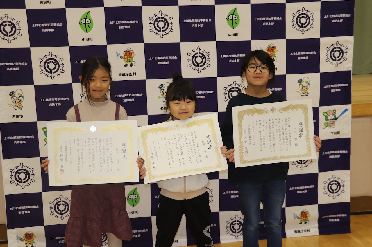 2.上川北部消防事務組合 下川小2年生5人へ感謝状 倒れている高齢者発見して対応 速やかな通報で予後に大きく貢献