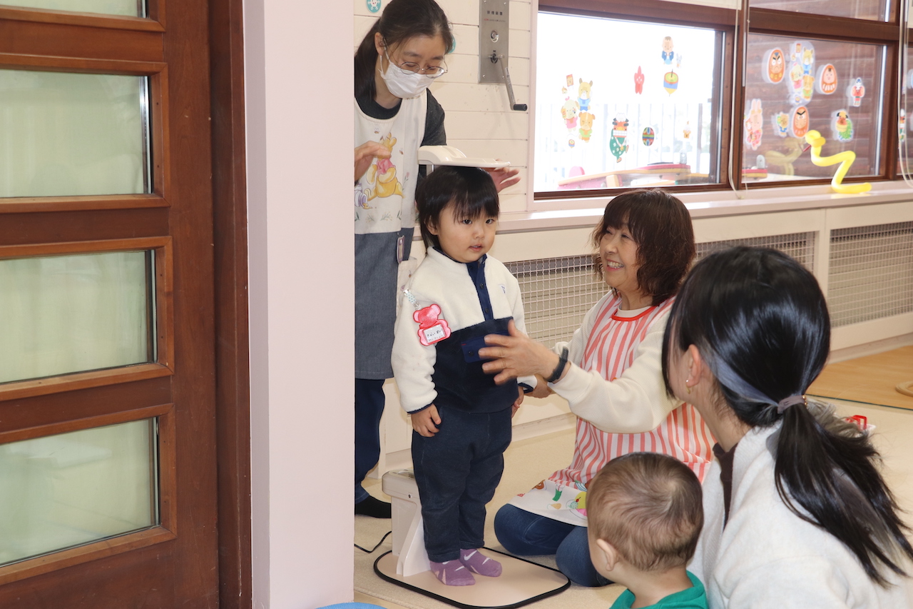名寄市子育て支援センターひまわりらんどで、今年初めての身体測定が行われ、13組31人の親子が参加した。(1月11日付紙面)