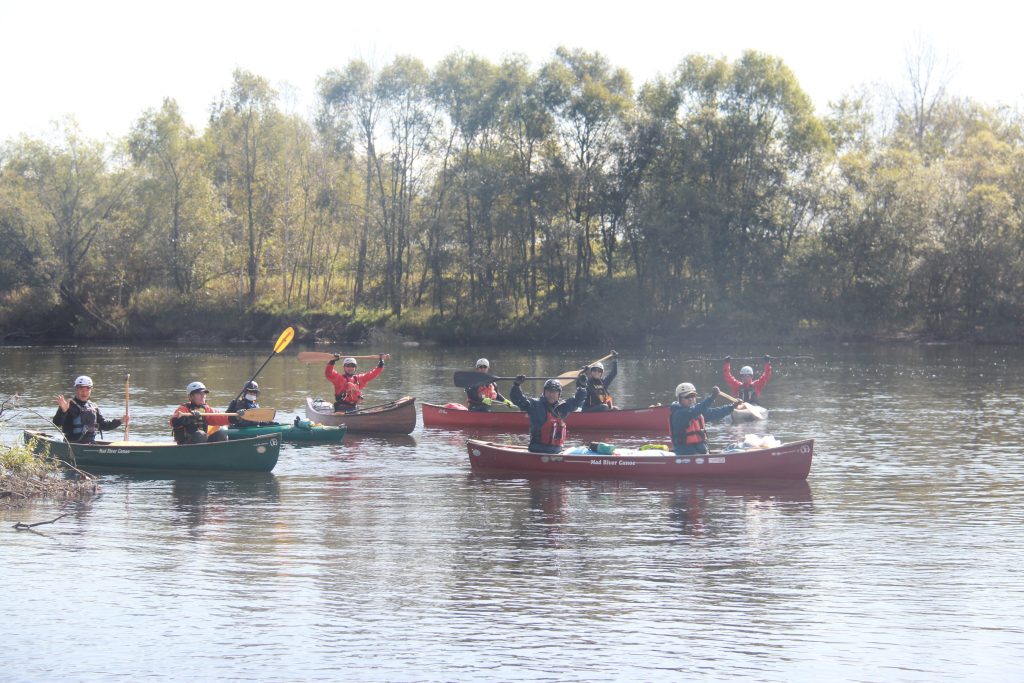 【美深】天塩川紅葉カヌーツーリング 葉が色付く光景眺める ごみ拾い、環境美化に貢献