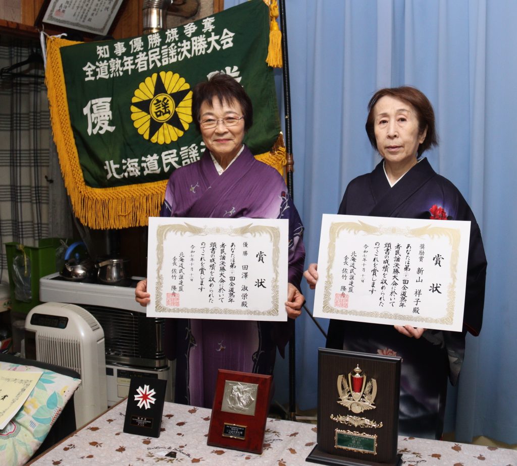 桂名会に所属する田澤淑栄(よしえ)さんは、12日に札幌市内のホテルで開かれた「令和7年度北海道知事杯・北海道民謡連盟杯全道民謡決勝大会」の熟年者の部で初優勝を果たした。(10月21日付掲載)