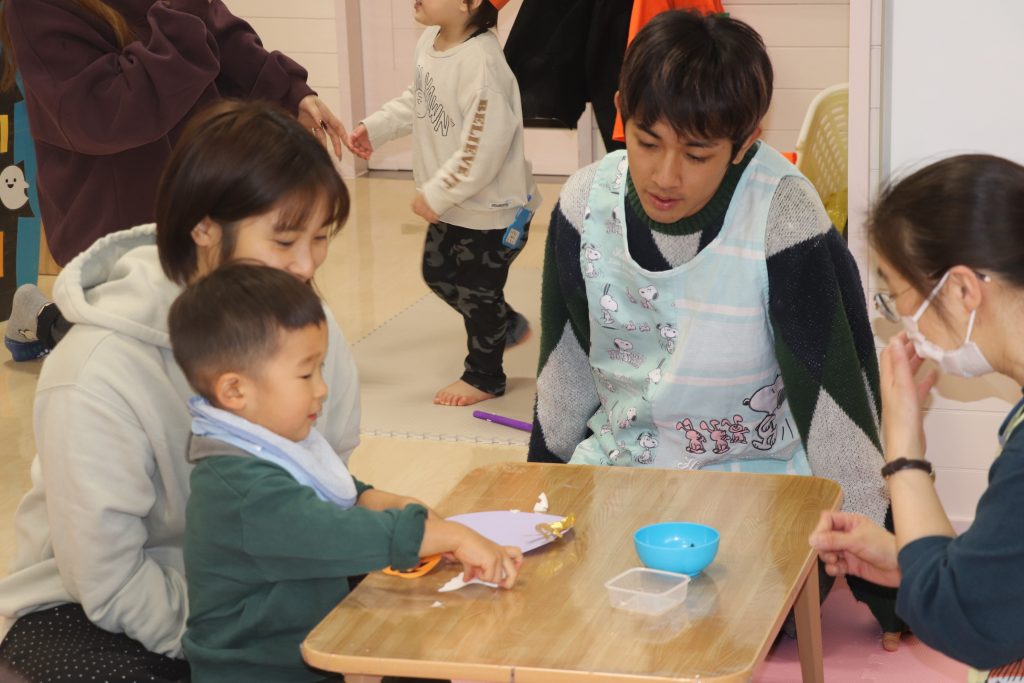名寄市子育て支援センターひまわりらんど(紺野美奈子所長)で、23日にベビーキッズクラフトが開かれ、午前・午後合わせて12組27人の親子が参加した。(10月25日付掲載)