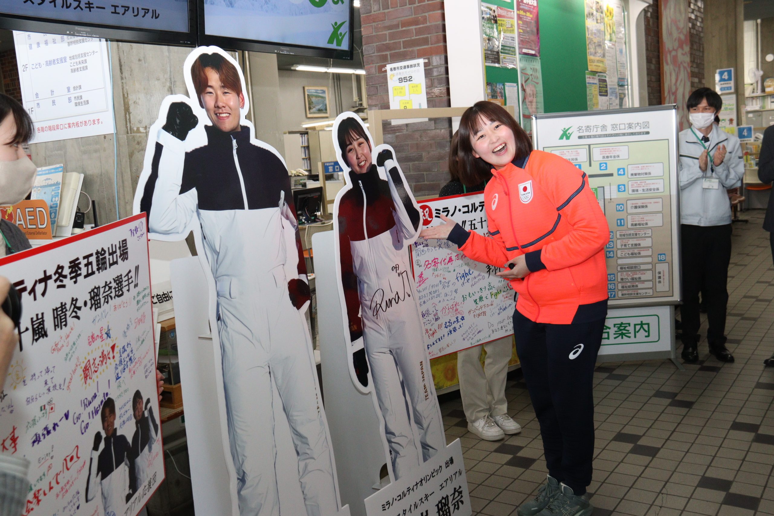 ミラノ・コルティナ冬季五輪のフリースタイルスキー・エアリアル種目に出場した、名寄出身の五十嵐瑠奈さん(21)=日本体育大学=が、26日午後3時半に市役所名寄庁舎を訪問。多くの職員に迎えられ、加藤剛士市長に出場報告を行った。(2月28日掲載)