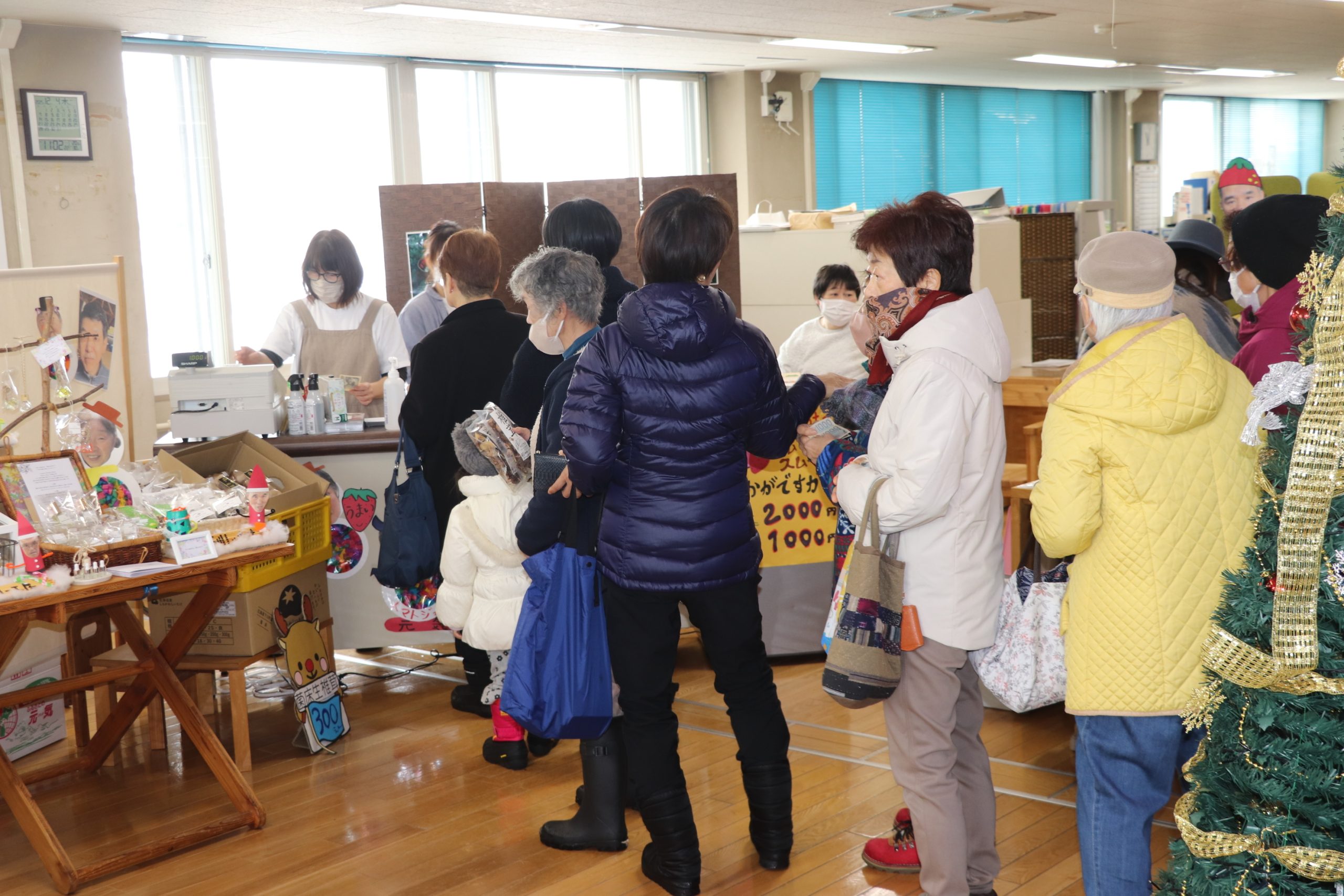年内最後となる「ちいきしょっぷ」が、4日午前11時から町役場1階フリースペースで開かれ、多くの住民などでにぎわった。