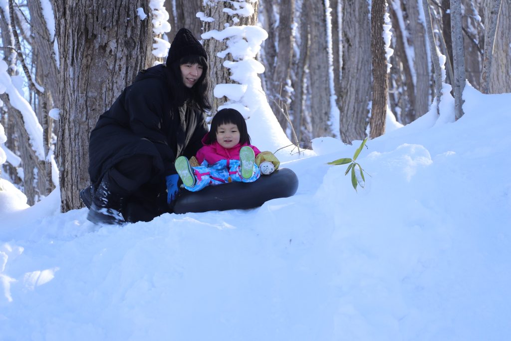 7日の初日は、親子連れなどが参加し、かまくら作り、雪山のチューブ滑りなど、雪遊びを楽しんだ。