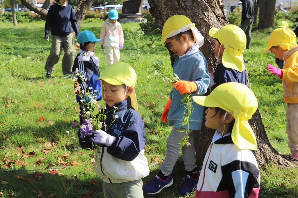 下川町認定こども園「こどものもり」(古屋いづみ園長、園児67人)の3歳児から5歳児の45人は、3日午前9時40分から町内の安原公園で森の遊びを行った。