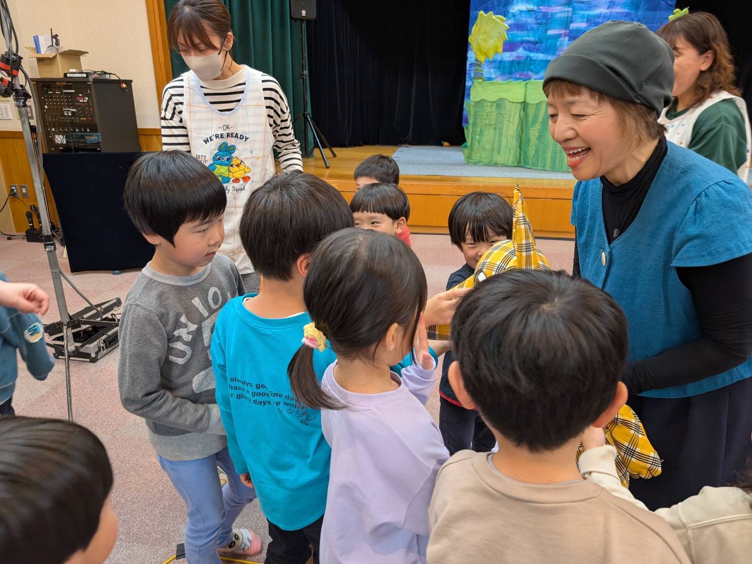 9日は小学生を中心に55人。10日はこどものもりの園児や老人クラブ会員などを中心に75人が参加し、合計130人が人形劇を鑑賞した。