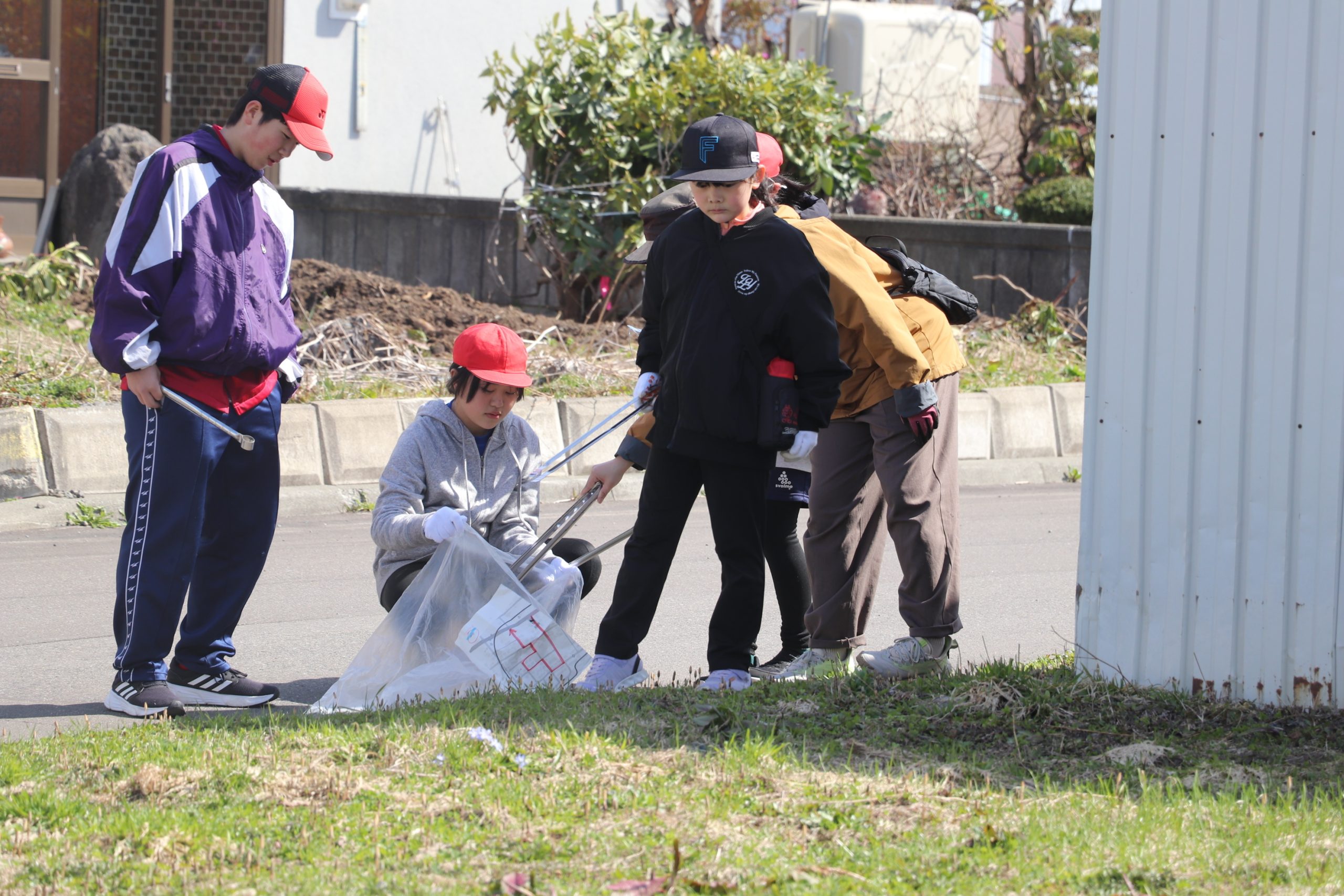 ごみ拾いをしている小中学生に話しかける住民の姿も見られ、参加した児童生徒は有意義な時間としていた。
