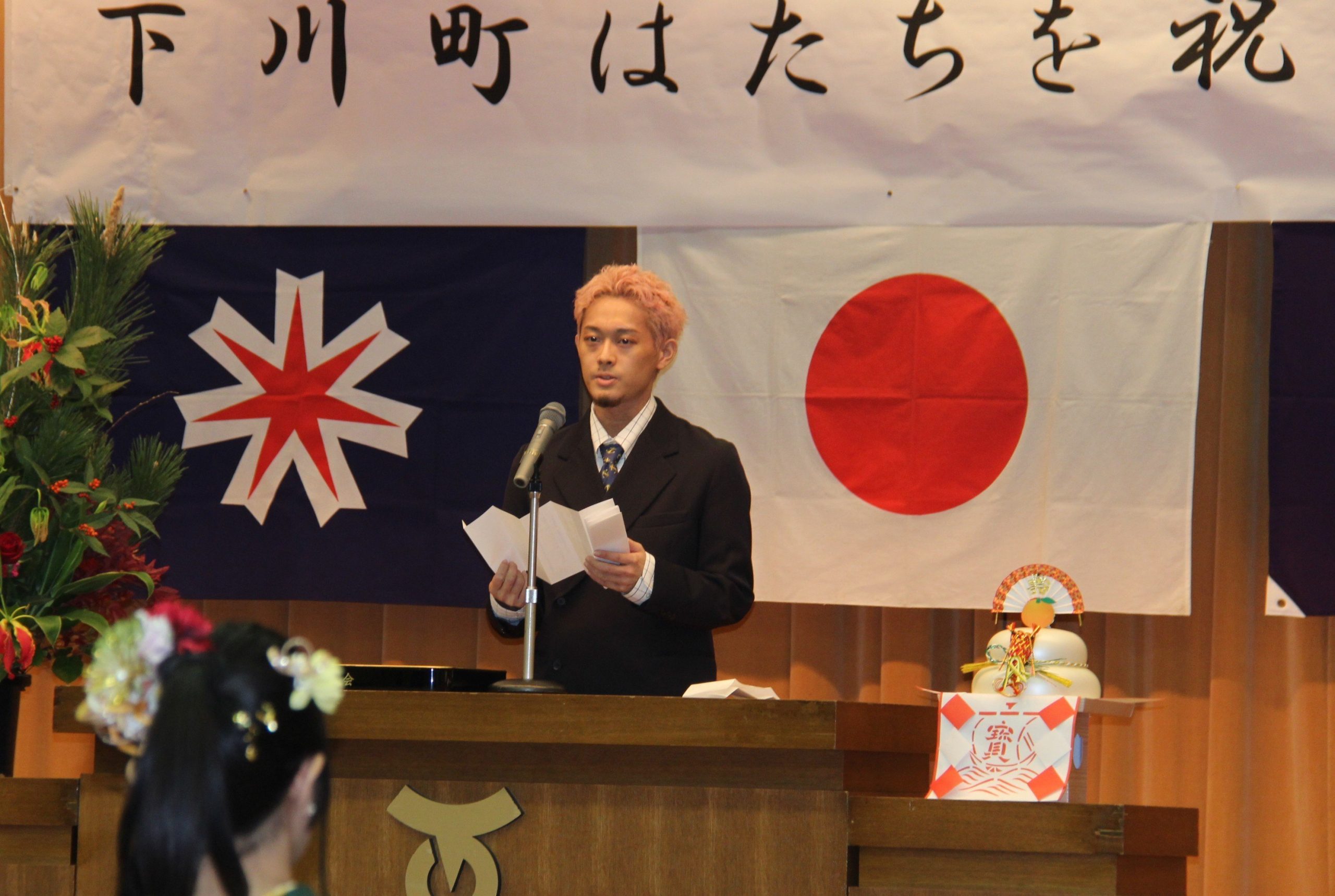 出席した森一晟さんは20歳の祝いを受け、「看護師を目指して札幌の専門学校に通っているが、大人の一員になった―と自覚する一方、未熟な部分も感じる。成人としての責任感を持ち、勉強も頑張りたい」と話す。古里下川に「リラックスできる場所」、同級生との再会に「懐かしい。変わらない。落ち着く」と語る。