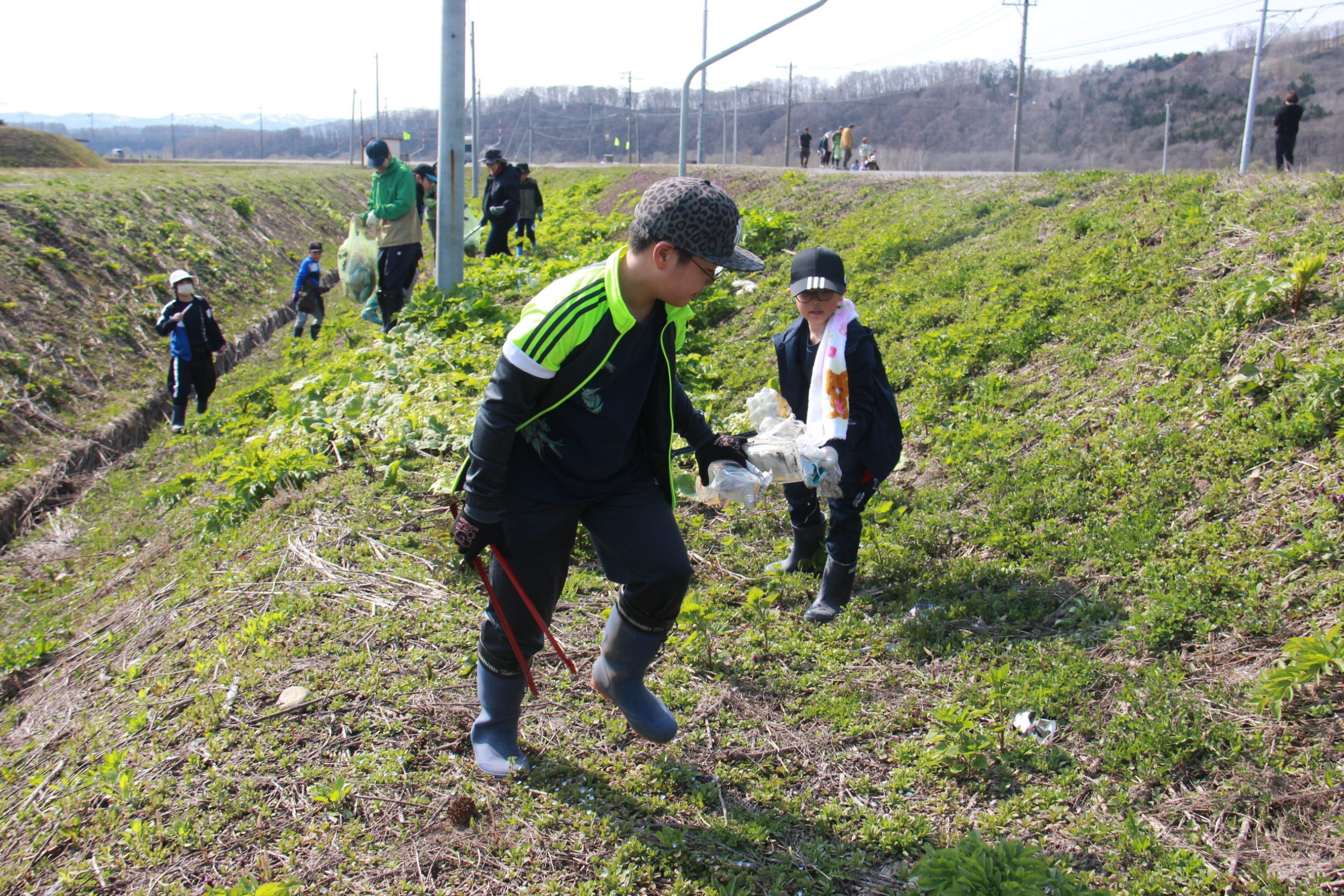 中名寄小学校(稲本雄一校長、児童13人)は、1日午後1時半から神社山の環境整備・ごみ拾いを実施。また、国道239号沿いの清掃活動を行い、地域の環境美化に努めた。