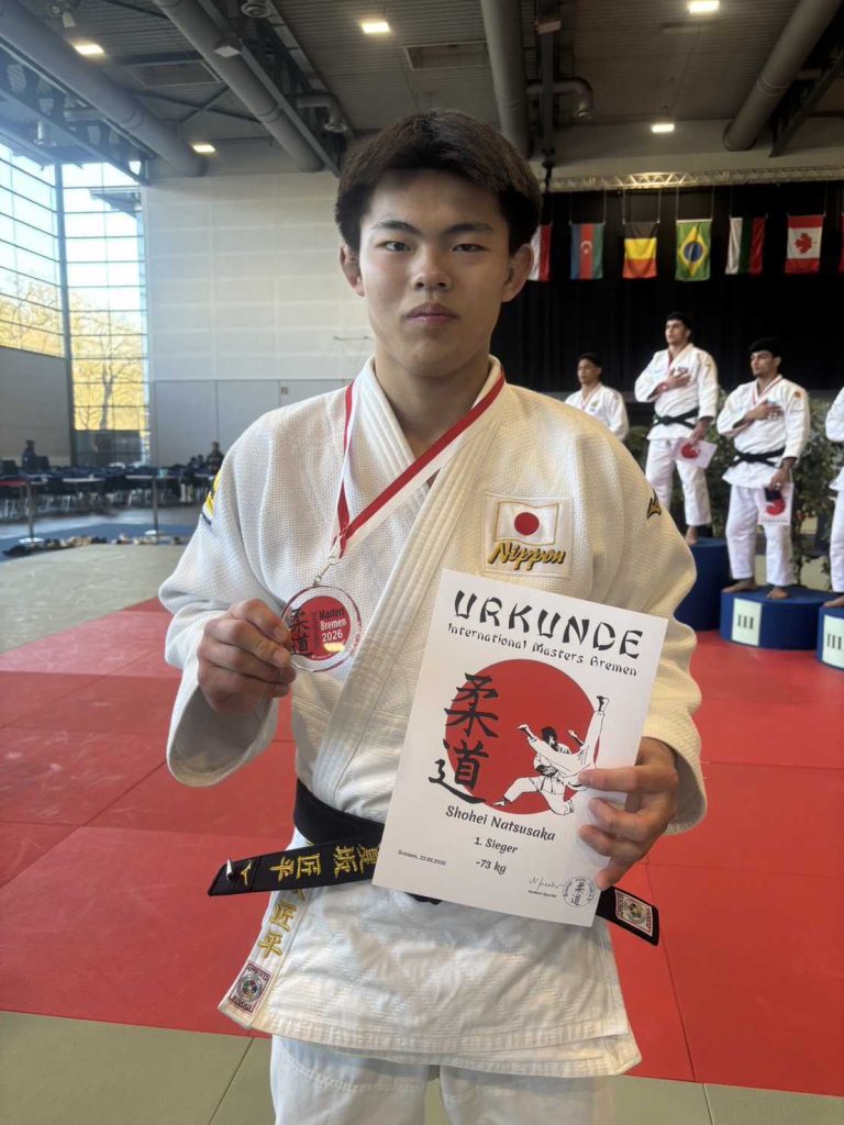 名寄市出身の夏坂匠平さん(18)が、ドイツ・ブレーメンで開かれた「ブレーメンジュニア国際柔道大会2026」の男子73kg級の部で見事優勝に輝いた。国際大会初出場にして世界一の快挙を成し遂げた。
