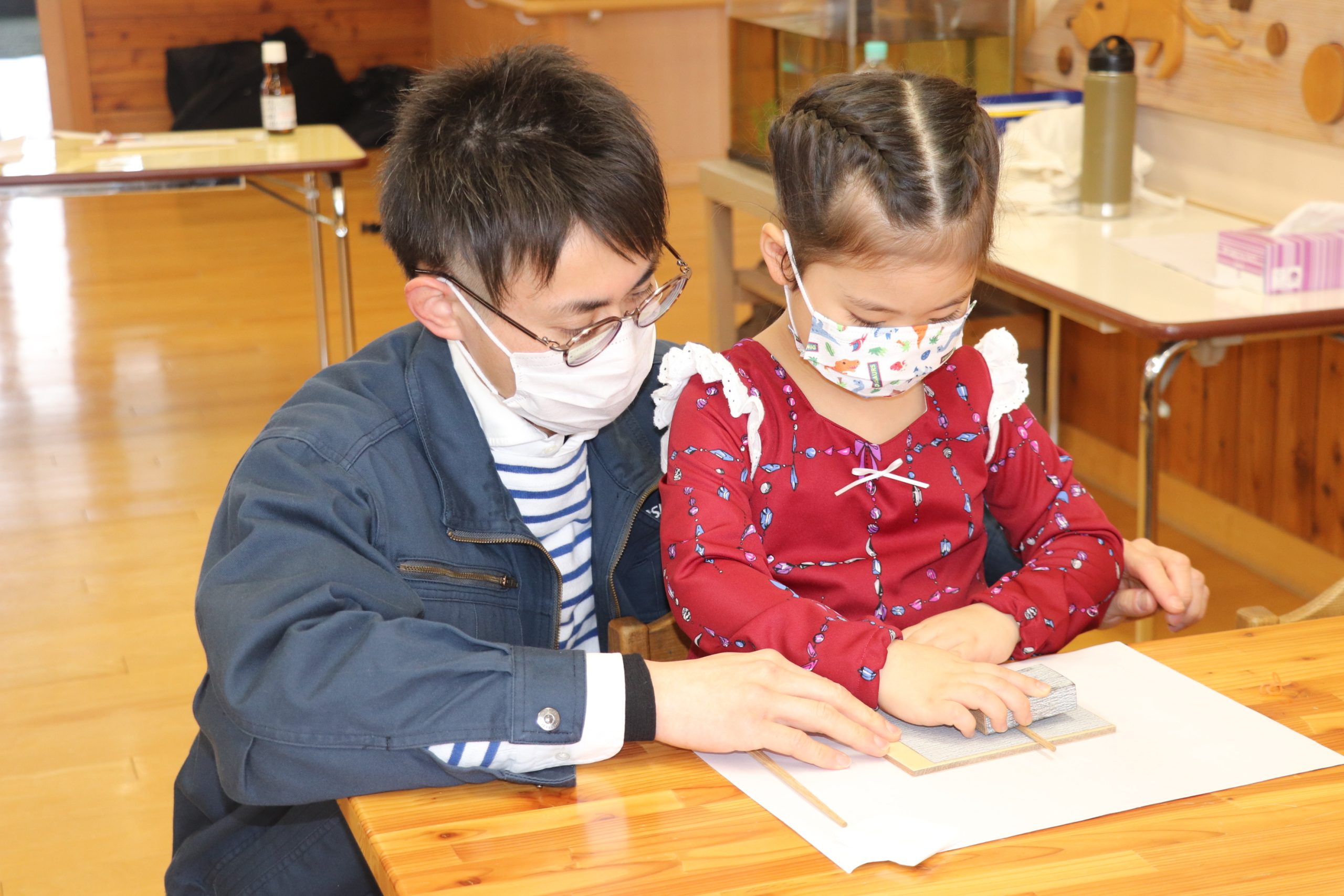 下川町認定こども園「こどものもり」(古屋いづみ園長、園児74人)の年長児21人は、19日午前10時から同園で、親子で「マイ箸」づくりを行った。