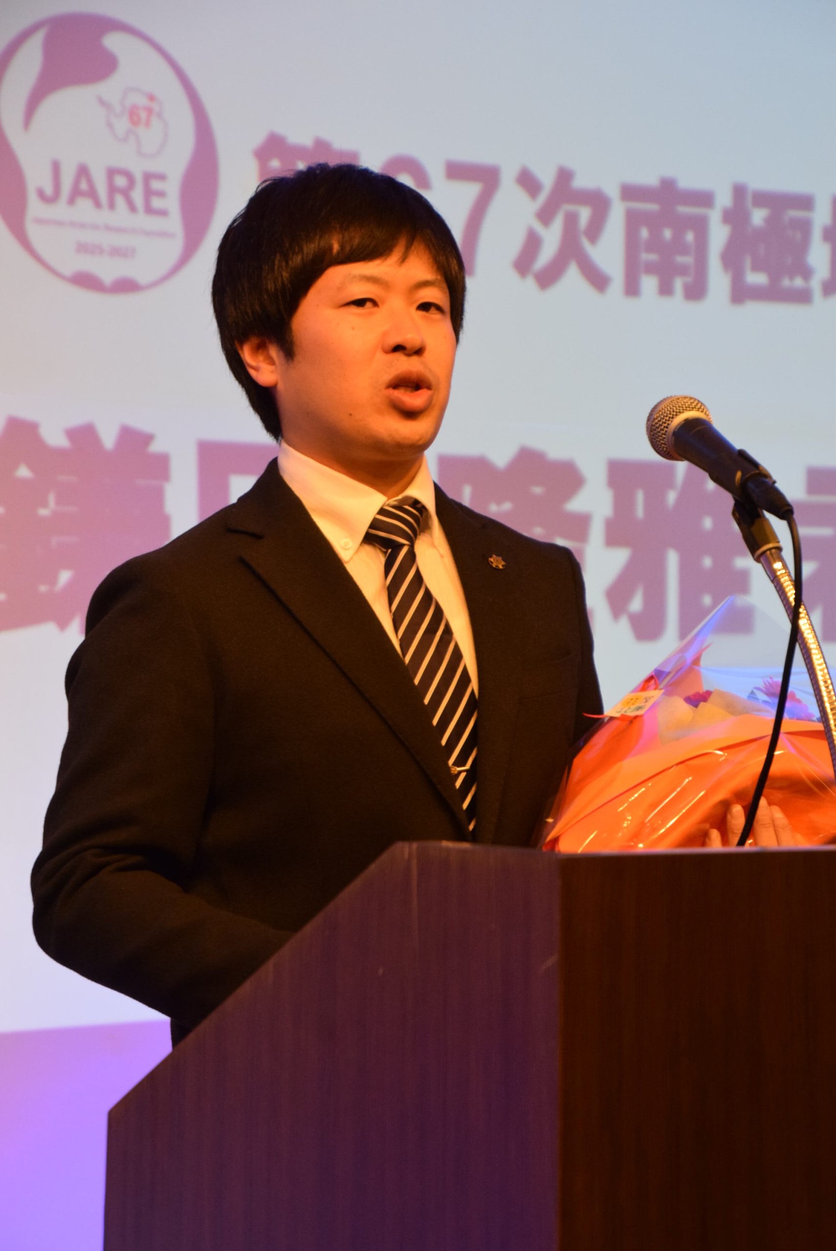 稚内市職員では、歴代3人目の南極観測隊員として業務に当たっている鎌田隆雅さん(35)=人事厚生課主任=。第67次隊員として南極に向けて12月4日に日本を発つが、それを前に、28日にはえびなイベントホールで壮行会(実行委員会主催)を開催。市内在住で過去に隊員として任務に当たった人や市職員、来賓など約80人が出席し、鎌田さんを含む67次隊全員の南極での任務遂行と無事帰国を願った。
