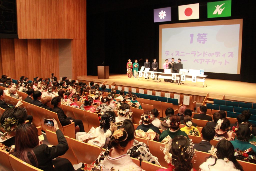 新成人で構成する同祝う会実行委員会(米田ゆめ実行委員長)が主催。対象者288人のうち128人が出席した。