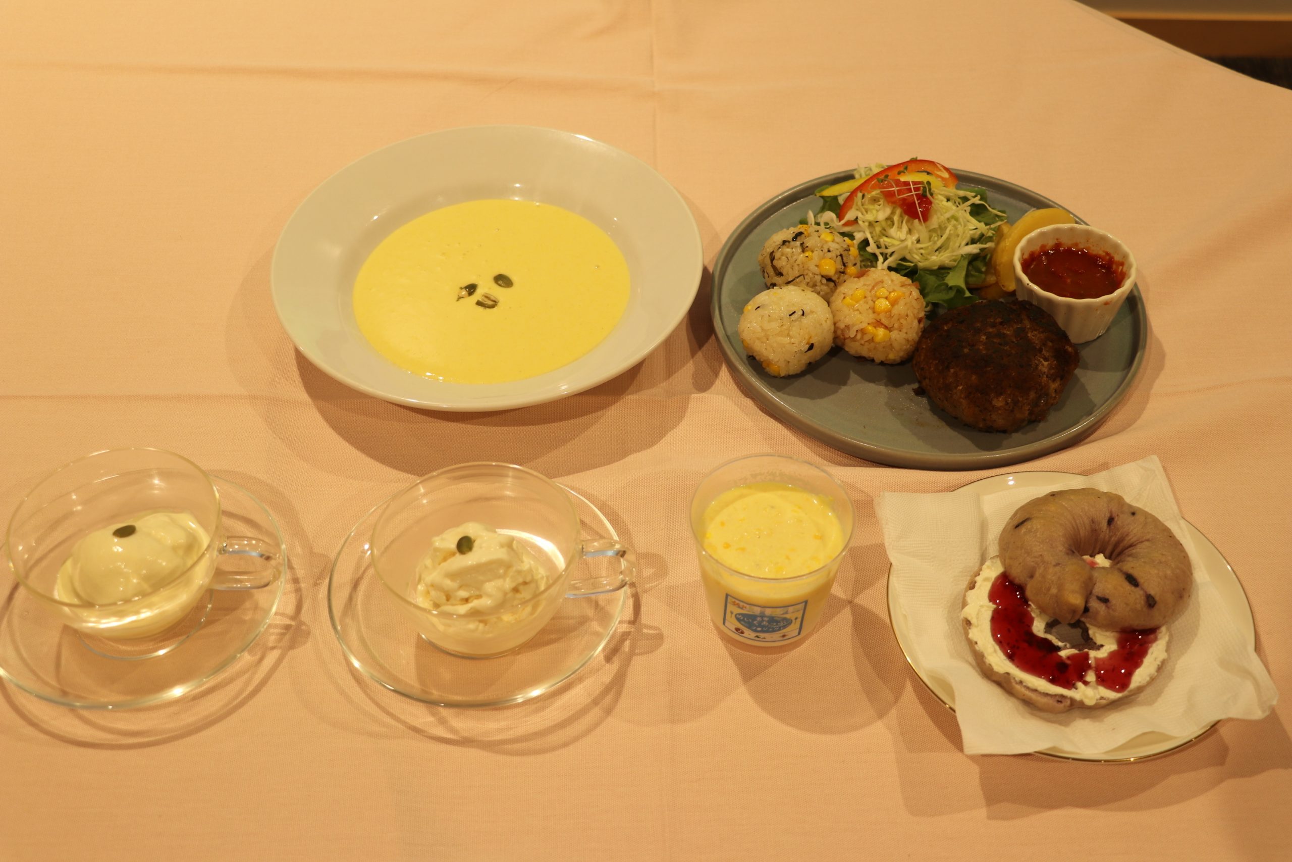「ライスボール」は水口歩美さん(2年)が考案、一之瀬友結さん(同)が発表。「冷製コーンスープ」は水口さんが考案して発表。「白いとうきびプリン」は松本琉花さん(同)が考案、山本想代さん(同)が発表。「とうきびアイス」は松本琉花さんが考案して発表した。