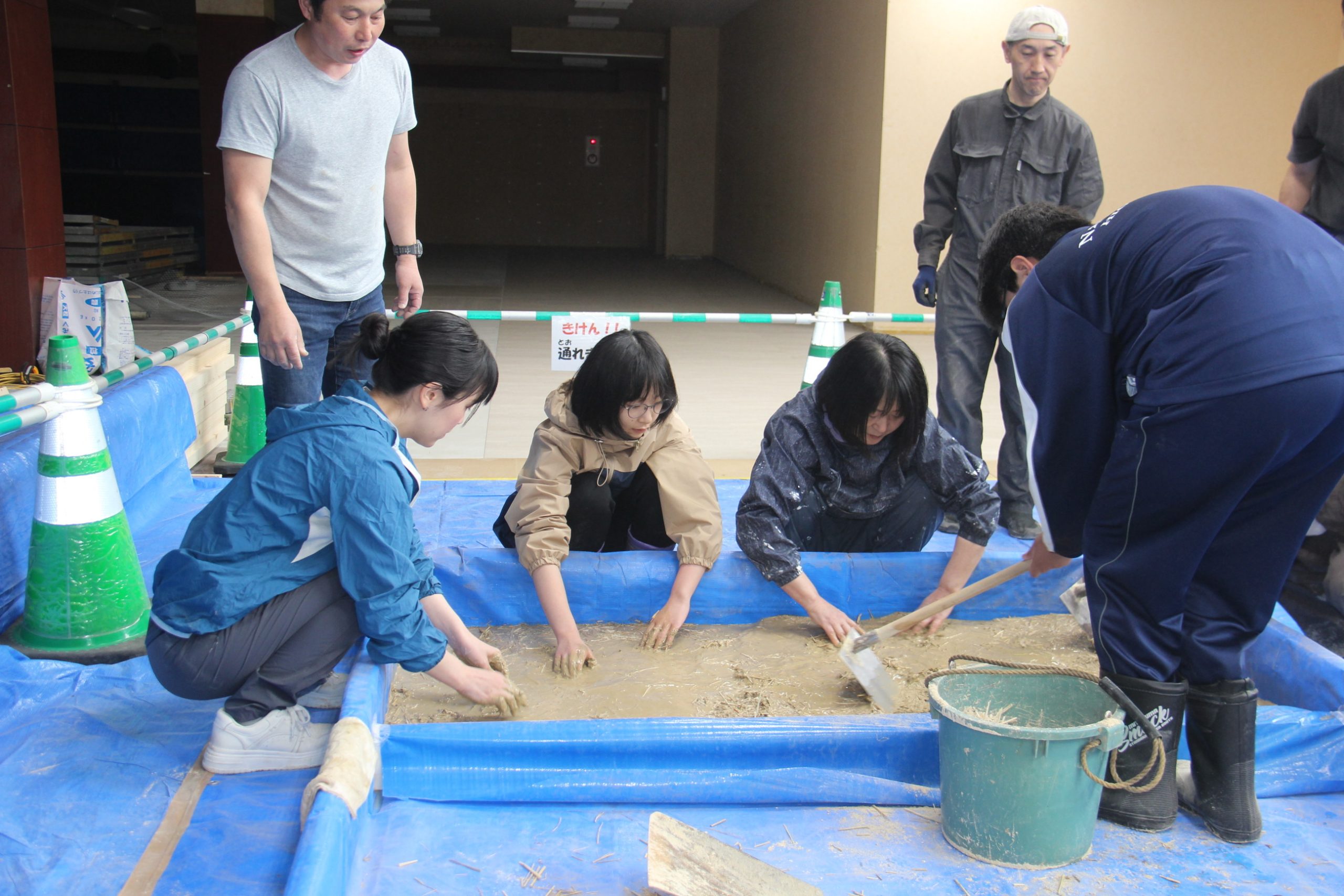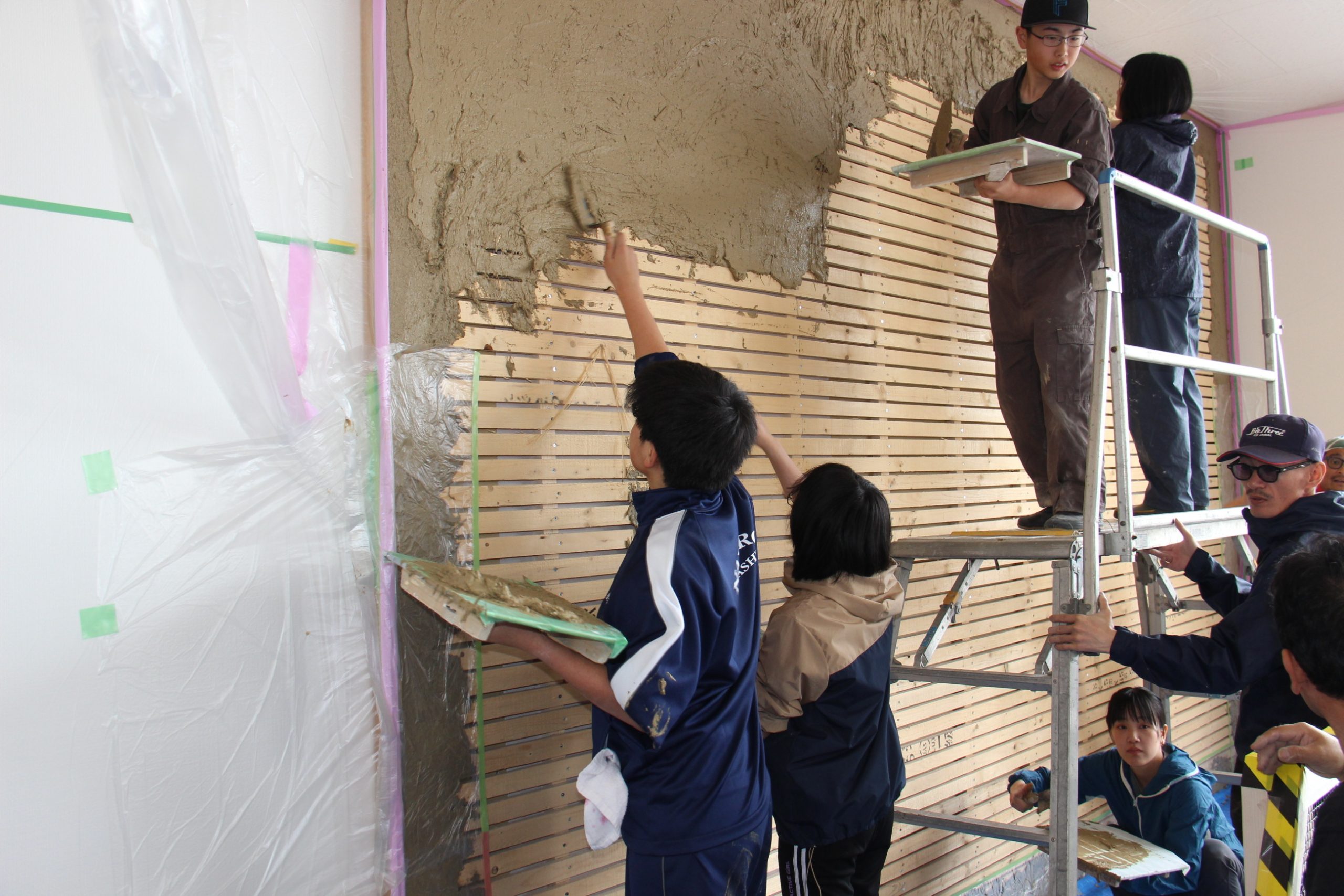 名寄左官組合と大野土建 日本の伝統技術を体験 土壁塗りイベント 改装中の「Aubaなよろ」で