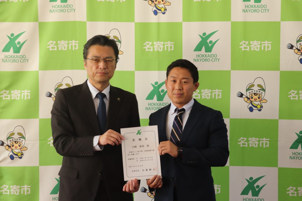 Nスポーツコミッションなよろの会長も務める遠藤さんとの縁もあり、地域おこし協力隊員に応募し、この日の委嘱状交付式となった。