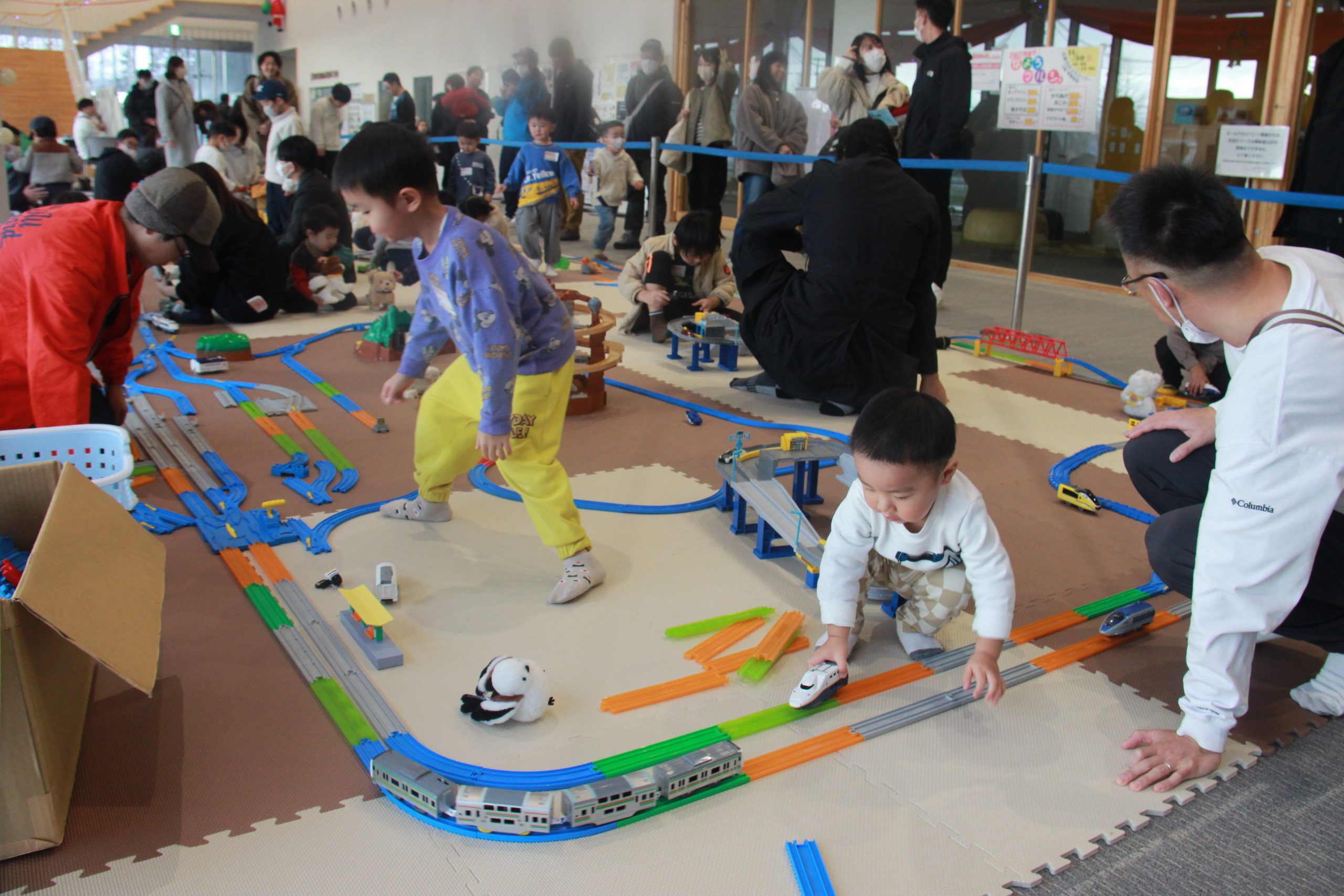 今年も市内外から多くの親子が来場。「列車・車コーナー」では「プラレール」や「トミカ」などが用意され、大いに人気を集めていた。