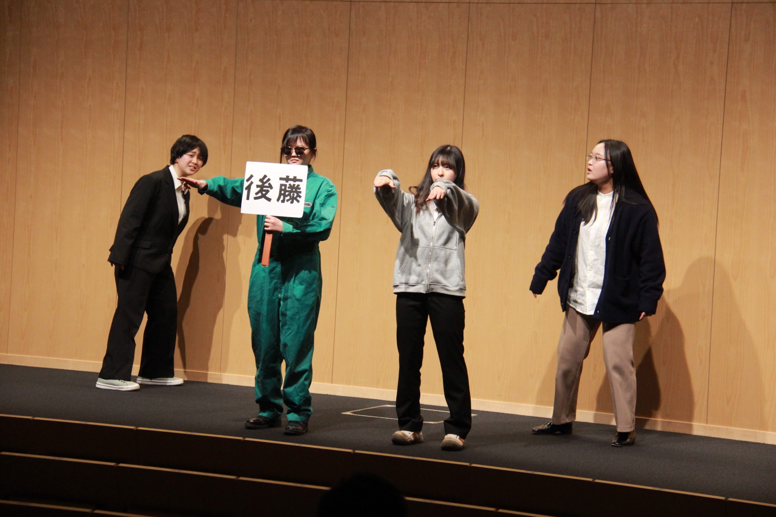 恒例となっている卒業公演で、今回は「寒い冬、コメディーを見て笑いませんか」をテーマにオリジナル作品2本を上演。4年生の岡崎サークル長、金本采己さん、佐竹和青さんが出演した。