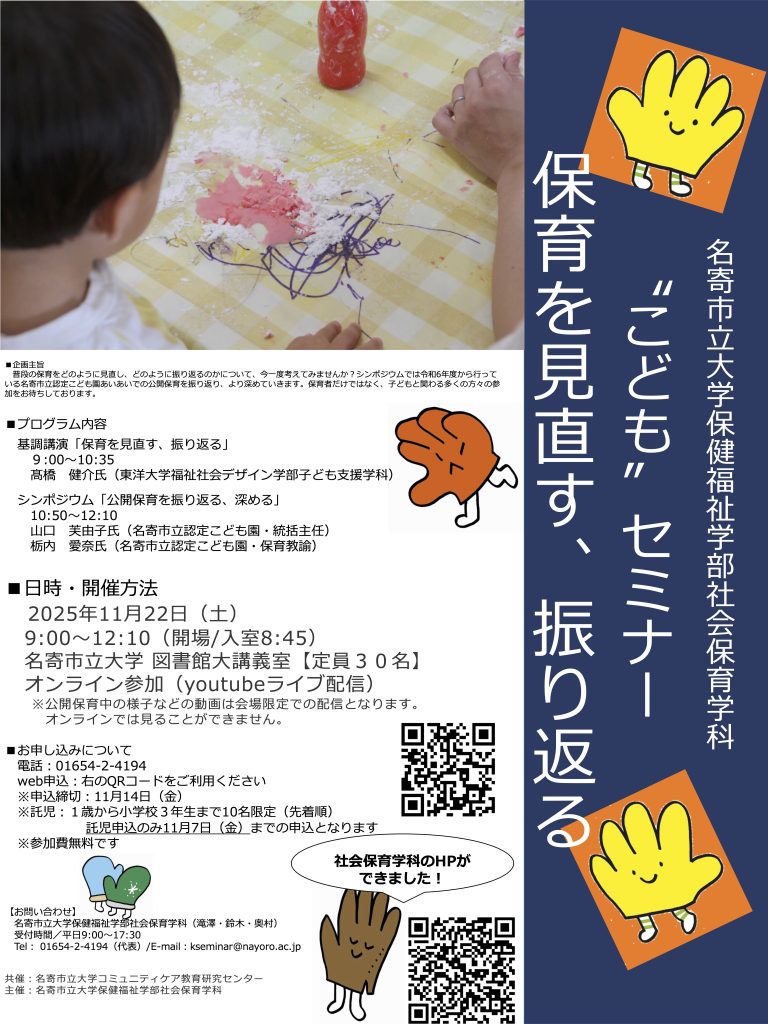 保育者だけではなく、子どもと関わる多くの方々の参加をお待ちしております。