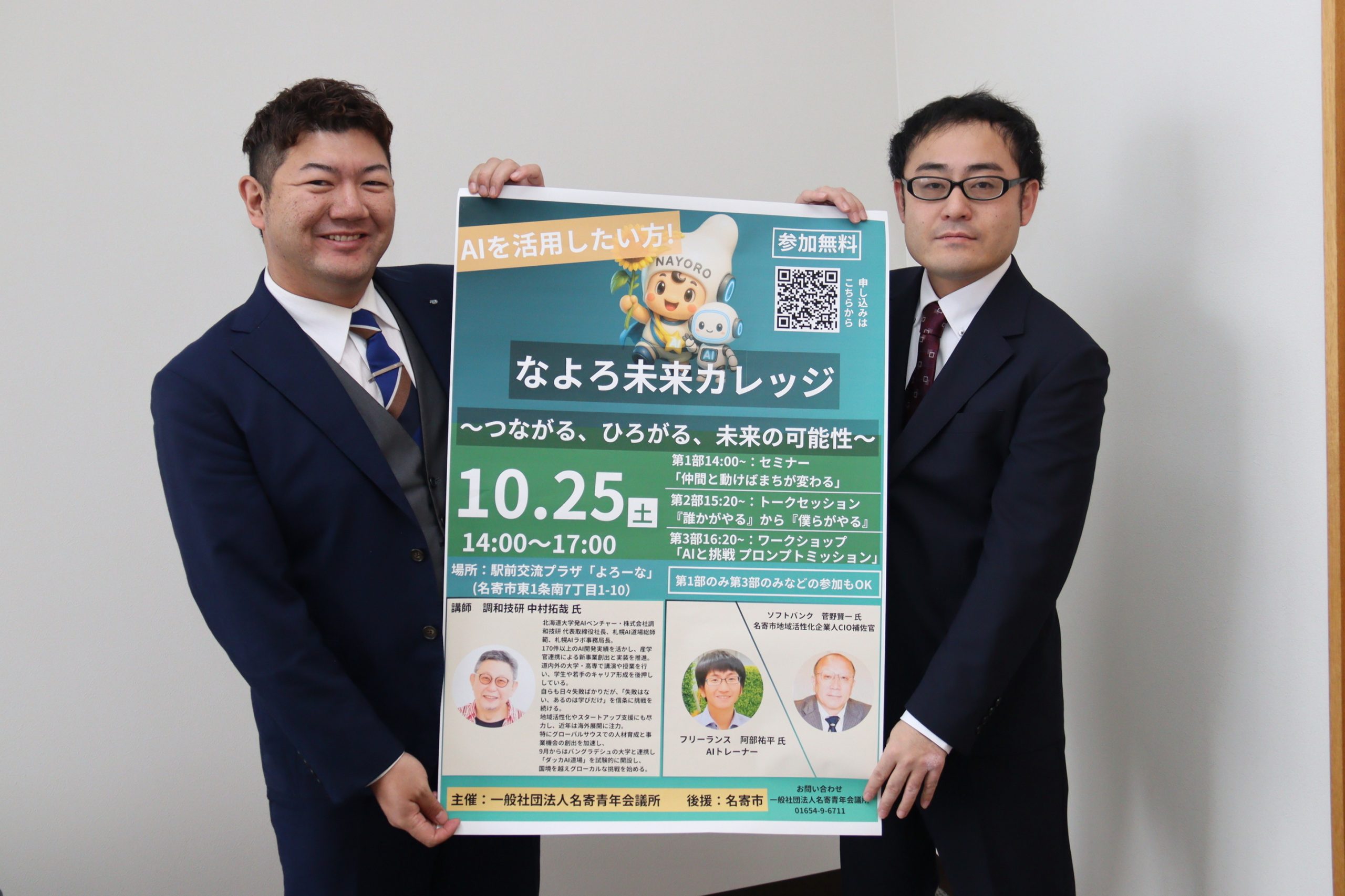 「なよろ未来カレッジ」は、名寄市の後援で開催。AIをテーマとした地域に根差した事業で、全3部で構成。