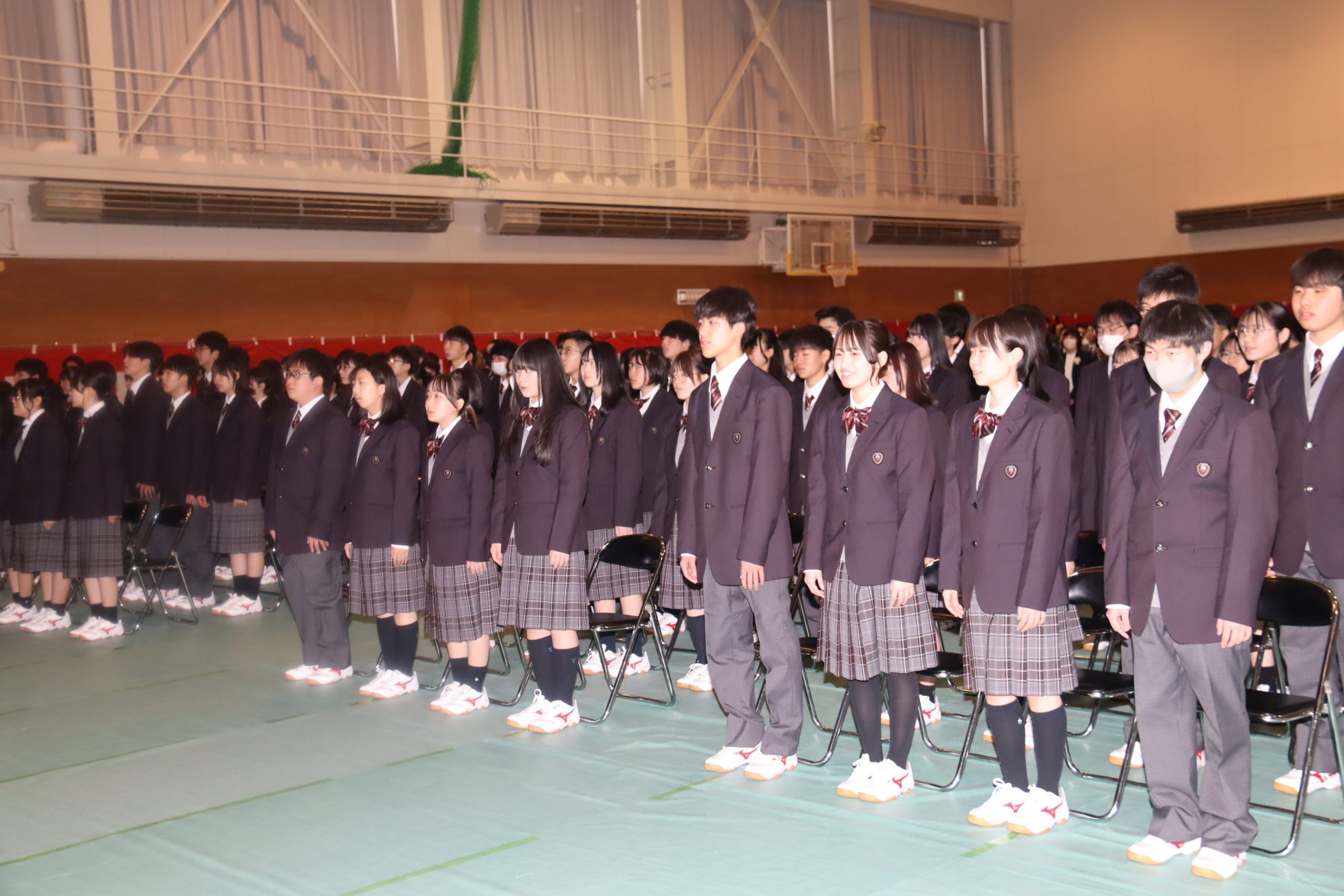 新入生を代表し、折原さくらさんが「私たち新入生一同は、主体的に行動し、多様性を尊重して、地域のため、自分のために責任ある行動をとりたい。授業、部活、学校行事などで、一人一人の個性と力を発揮し、先生方や先輩、仲間と共に切磋琢磨(せっさたくま)し続けます。そして、名寄高校の一員としての誇りを持ち、校訓『集中の行』の精神を胸に、未来のために学び続けることを誓います」と宣誓した。
