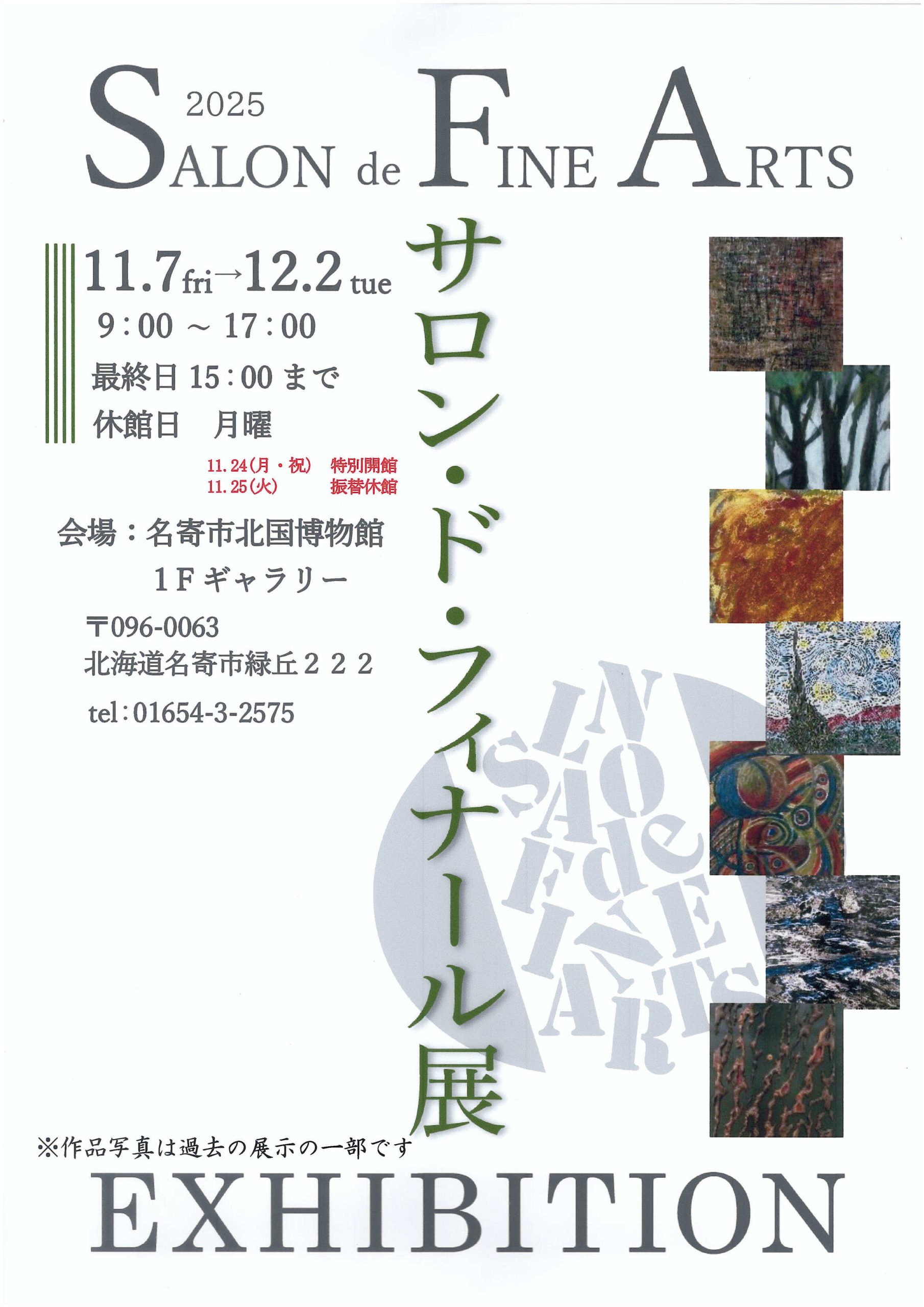 北国博物館での「サロン・ド・フィナール展」では、国内の会員約10人による絵画作品など20点程度が展示される予定となっている。