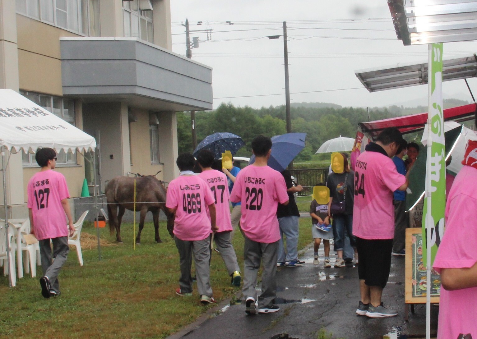 7月19、20日は下川商業高校の学校祭。19日は同校での一般公開日に合わせ、どさんこハナに乗って来場し、ハナのふれあいコーナーを設けた。あいにくの雨で移動中もずぶ濡れ。それでも来場者や生徒に喜んでもらえたからよかった。