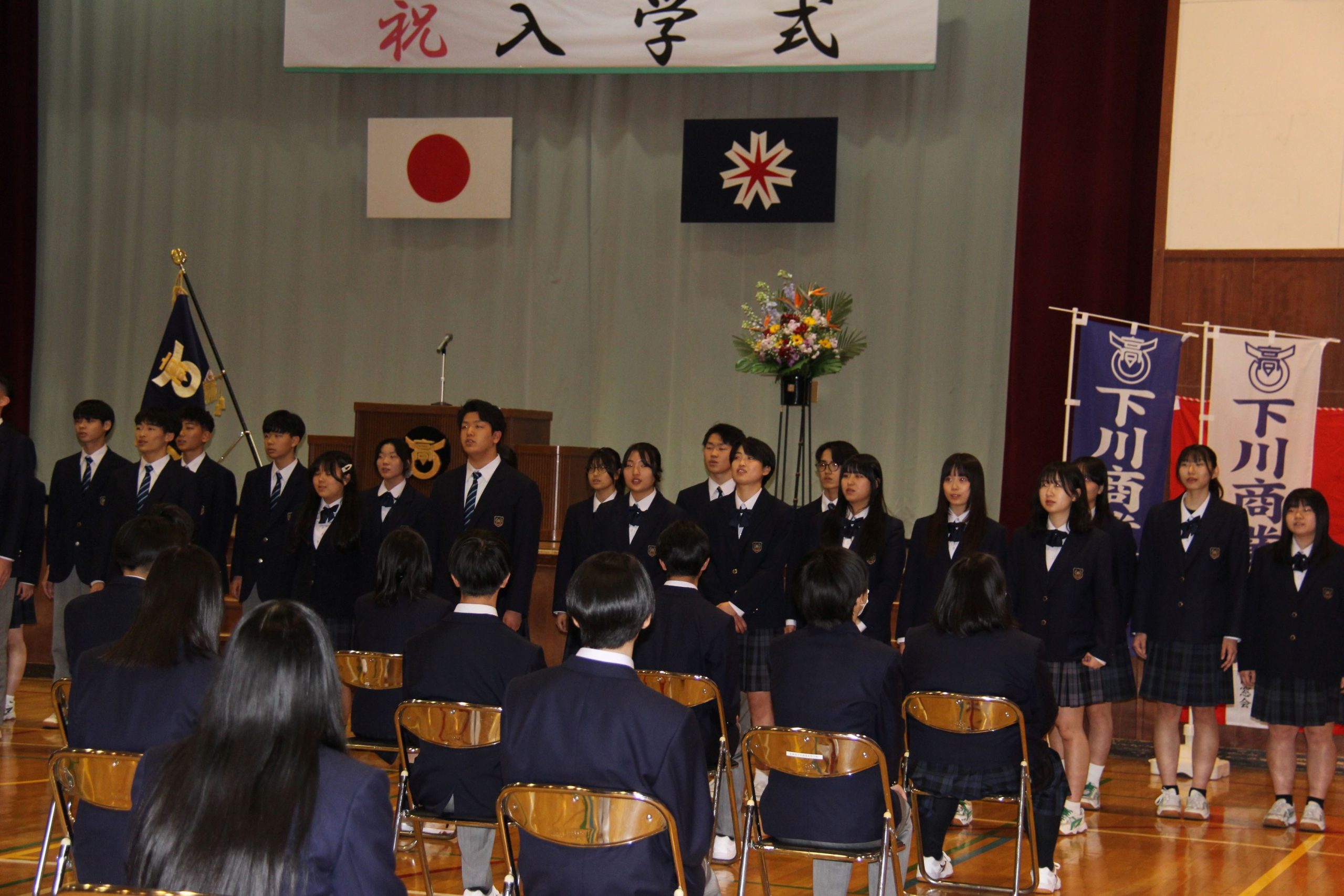 鎌本校長は「下川商業高校には、一人一人に目を向ける、小規模ならではの教育がある。『自律』を校訓に、商業校の理念『人づくり』を目指す。新入生には良き伝統を引き継ぎ、新しい風を吹き込んでほしい。情報化社会において『何が本当か』『大切なものは何か』と問う習慣をつけてほしい。私たちには探究力がある。当たり前のことを徹底的にすることで、何かを成し遂げることができる。人工知能が発達する中、『人間らしさ』が問われる時代になる。相手の身になって考え、尊重して思いやりのある言動と行動を心がけてほしい。本校は家庭や地域と一体になって、皆さんが心豊かにたくましく成長することを支える。思い切ってさまざまなことに挑戦してほしい」と式辞を述べた。