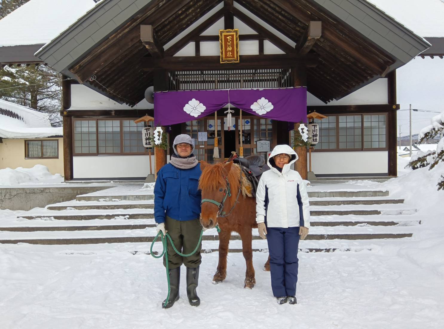 新年は、下川町内で愛馬ハナを飼ってから初めて迎えた「午(うま)年」なので、下川神社への初詣にハナと一緒に行ってきた。