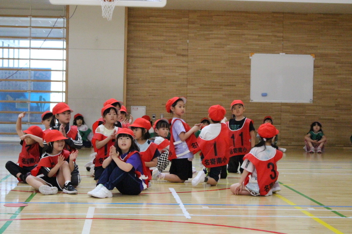 このうち1年生の体育は、体全体を使う「体じゃんけん」と「鬼ごっこ」を実施。初めての交流でもあり、最初は緊張した様子が見られたが、次第に解け込み、元気いっぱいに体育館内を走り回っていた。